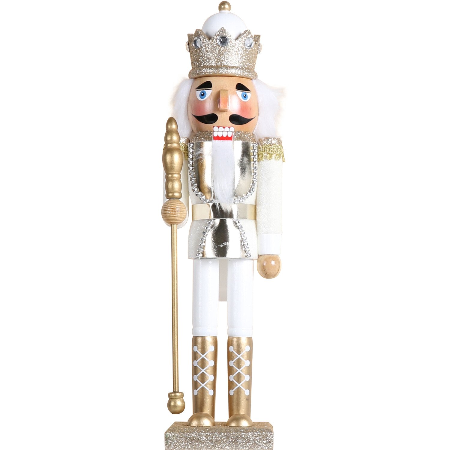 For a more traditional touch to your festive decorations, this Gold Champagne Nutcracker will look amazing standing tall and proud in your home. This wooden character is adorned with gold details to bring some sparkle to your festivities. He'll look great and match the decor, no matter where you put him!