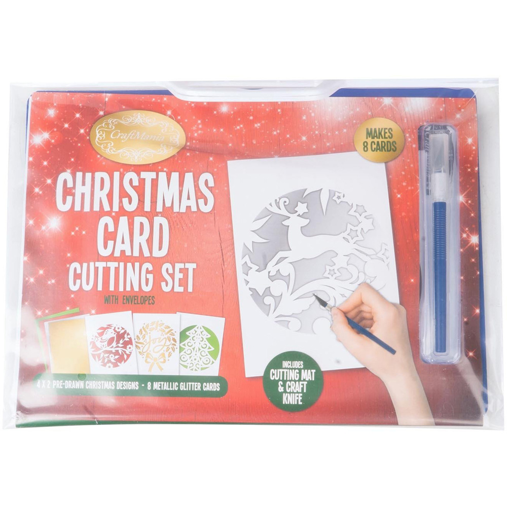 Give personal cards over the festive period with this Make Your Own Christmas Card Cutting Set. With eight pre-drawn cards to cut out, eight sheets of metallic glitter card, eight white envelopes, a cutting mat and a cutting knife, this exciting set has everything you need to make lovely cards.