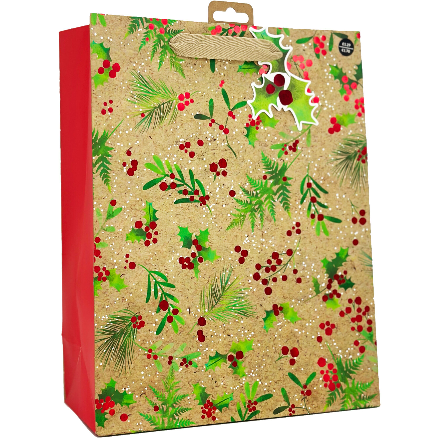 Make your festive gifting truly unforgettable with this Christmas Floristry Gift Bag. Featuring a charming foliage pattern with holly, berries and pine, this bag exudes traditional holiday warmth and elegance. Its spacious interior makes it ideal for larger gifts like hampers, clothing or seasonal treats, while its sturdy handles ensure easy carrying.