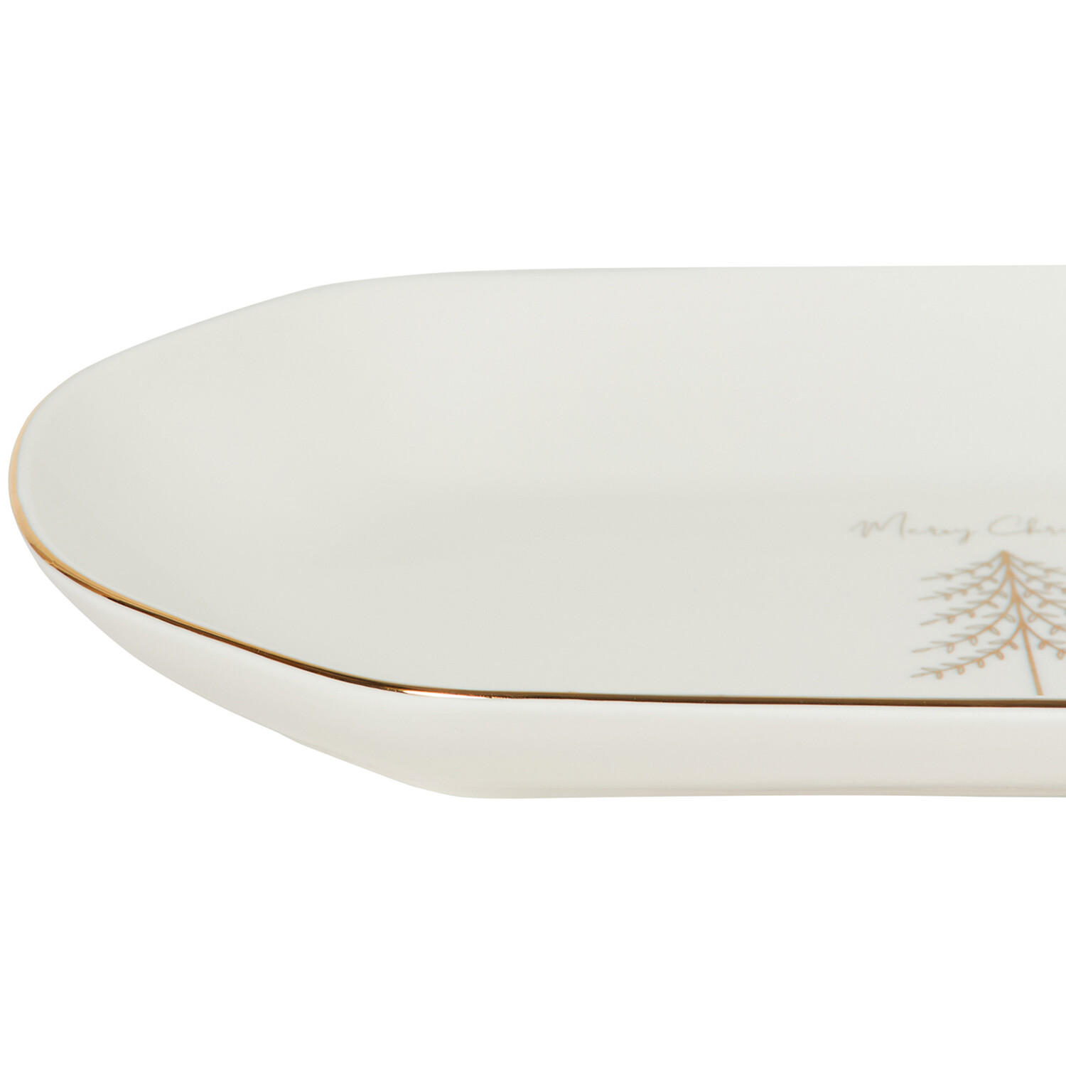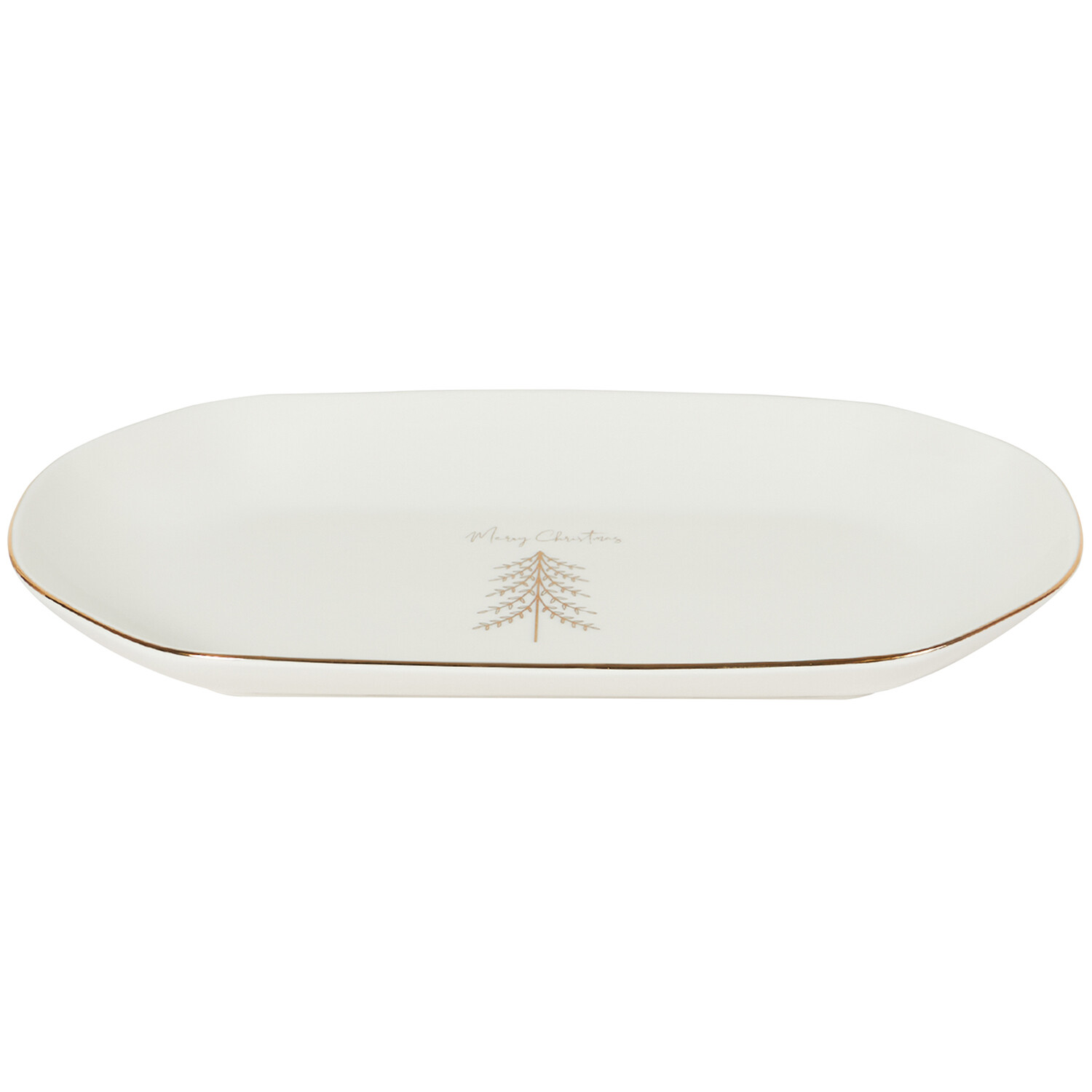 Enhance your festive dining with the Gold Pine Oval Platter, a perfect blend of elegance and holiday spirit. This white platter features a refined hand-finished gold design, beautifully complemented by a "Merry Christmas" text and a charming tree motif. Ideal for serving your seasonal favourites, it adds a touch of sophistication to any holiday table.