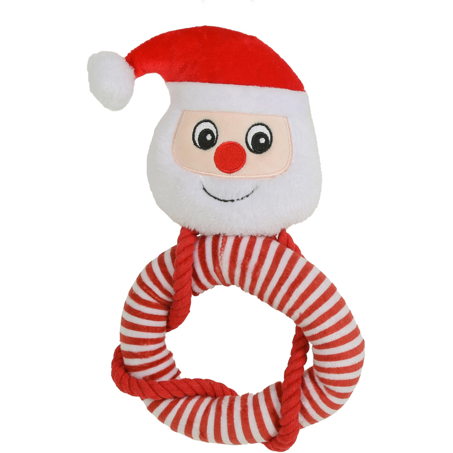 The prefect present for a good pooch, treat your canine friend to this Christmas Rope Ring Dog Toy. This pet toy combines a rope ring with a plush festive character of either Santa Claus or a penguin, with a squeaker inside that your dog is sure to love chewing and playing tug-of-war with.