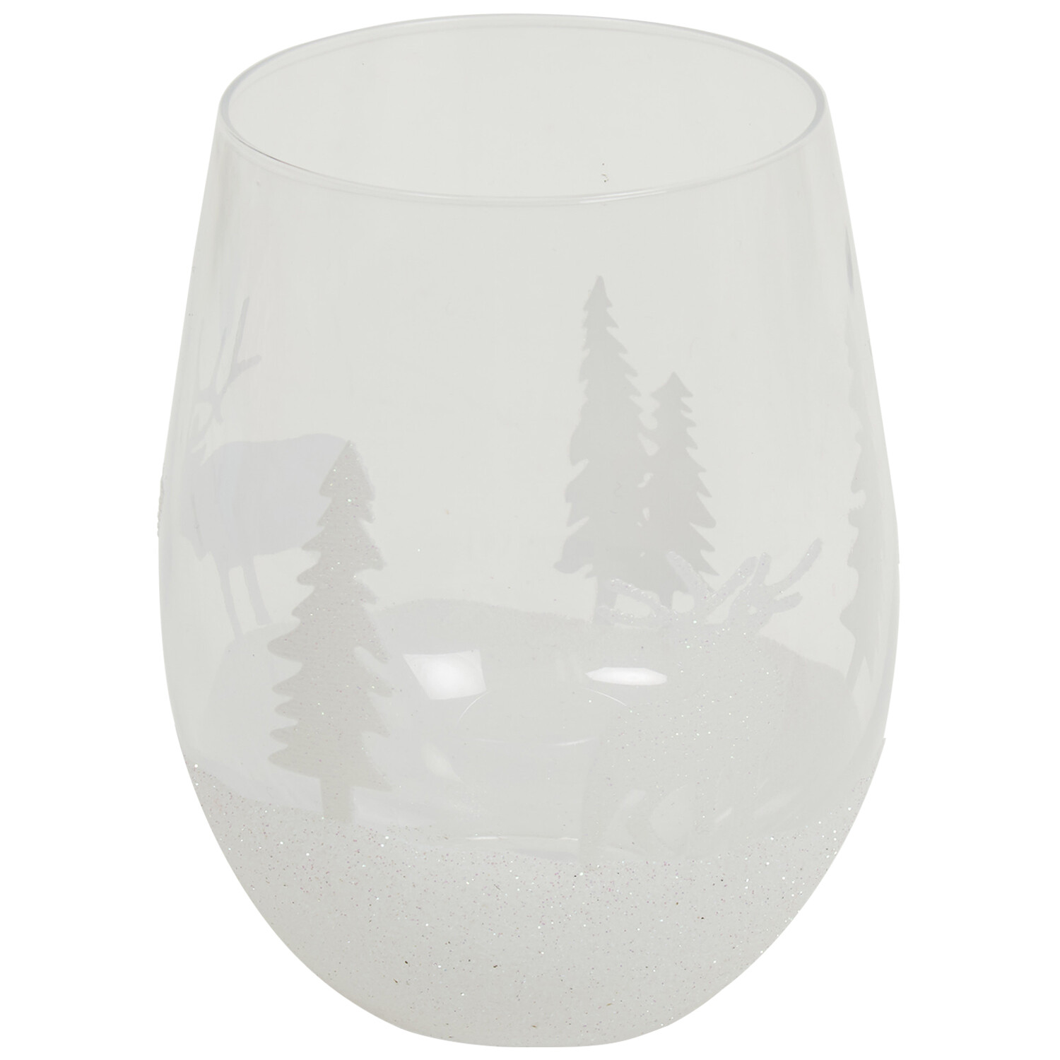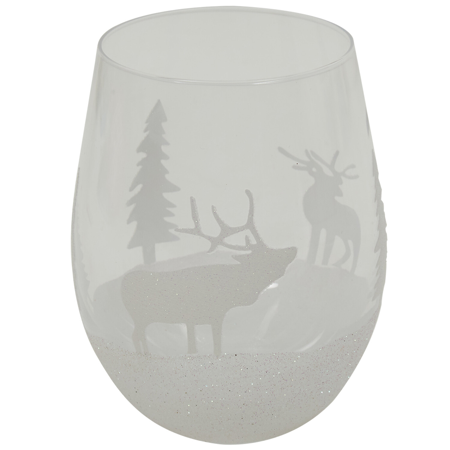 Elevate your party aesthetics with the Christmas Scene Tumbler 530ml. This classic glass tumbler features a portrait of a Christmas scene with reindeer and X-mas trees. They are covered with white glitter, adding a wintery and snowy feel. The tumbler includes a radiant white finish and holds up to 530ml.
