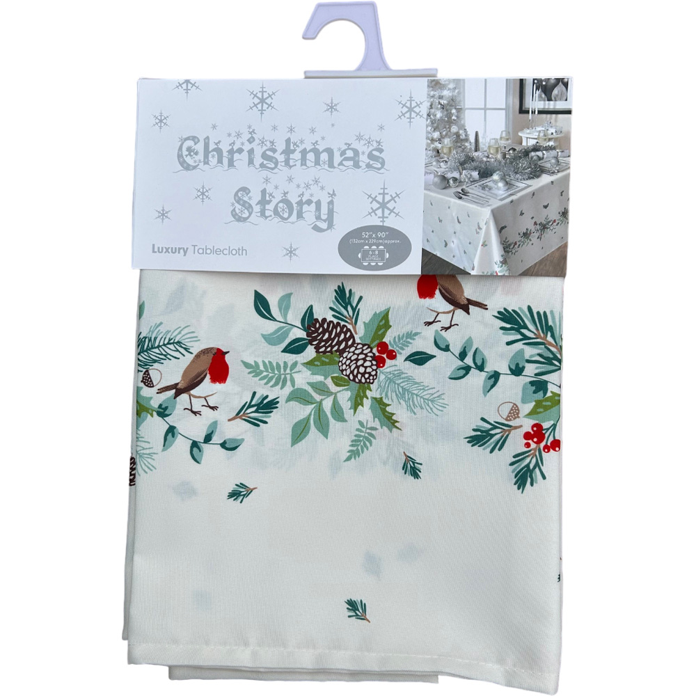 Christmas Story Cream Robin and Holly Berry Tablecloth 130 x 300cm