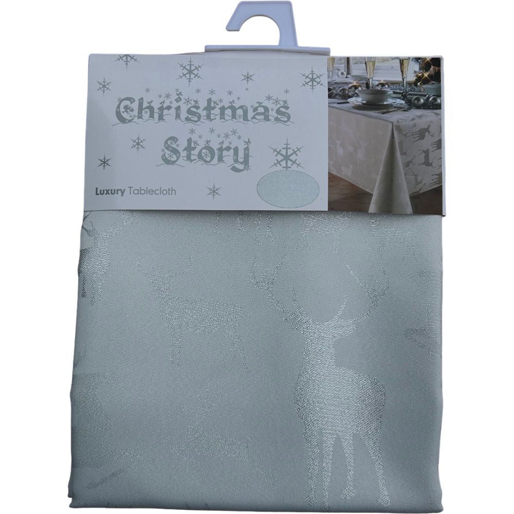Christmas Story White and Silver Stag Tablecloth 130 x 200cm