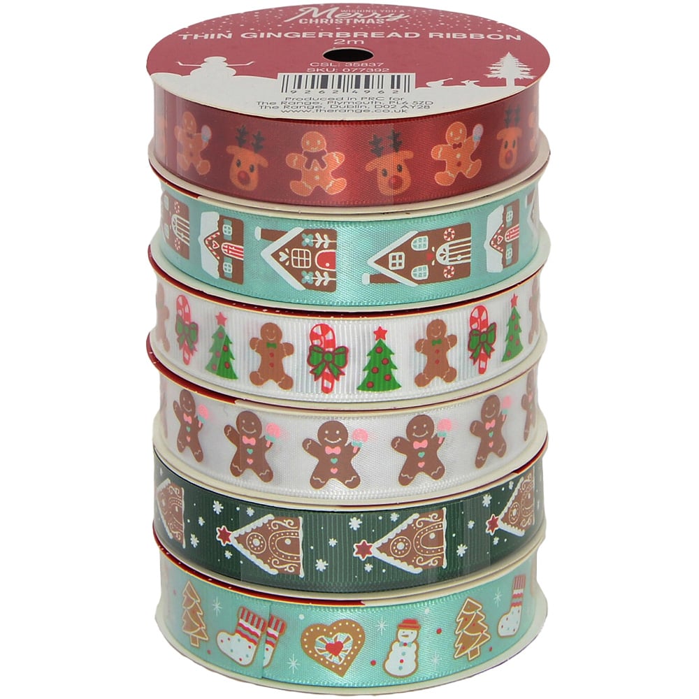 Add a festive touch to your craft projects this Christmas with this Thin Gingerbread Ribbon. These 2 metre long ribbons come in 6 different gingerbread themed designs that are ideal for embellishing your Christmas crafts such as card making, haberdashery, scrapbooking, DIY decorations, and gift wrap.