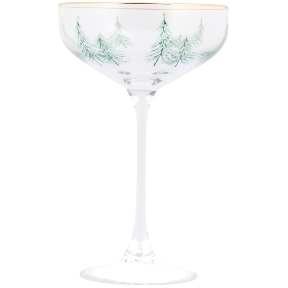 Add a hint of elegance and festive flair to your table with the Christmas Tree Coupe Glass. Flaunting a sleek and modern build, this glass is further adorned with a Christmas tree design. It offers a generous capacity and is finished with a classic gold rim, making it a stylish and practical addition to your dinner table this holiday season.