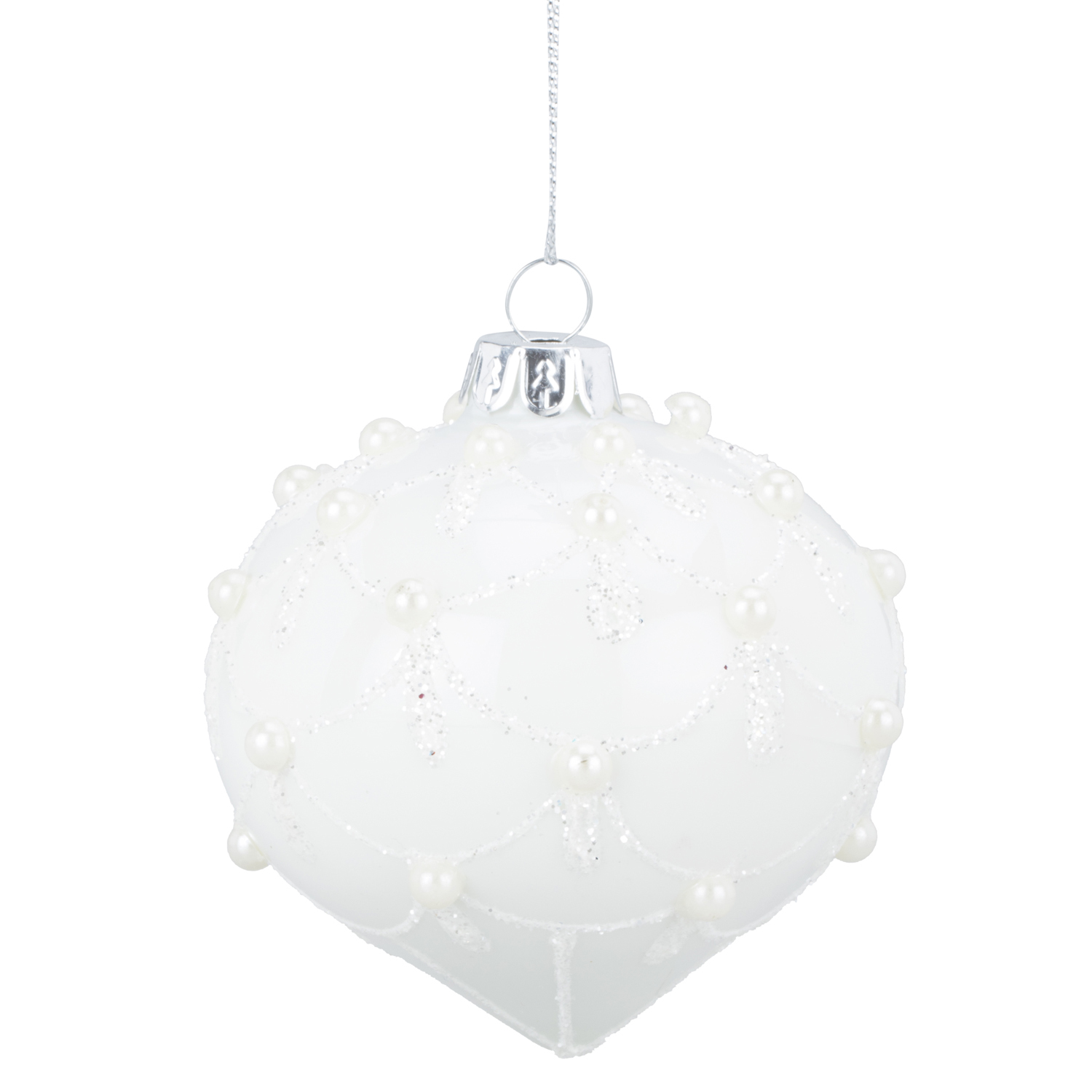 - Ornate and intricately detailed pearled bauble