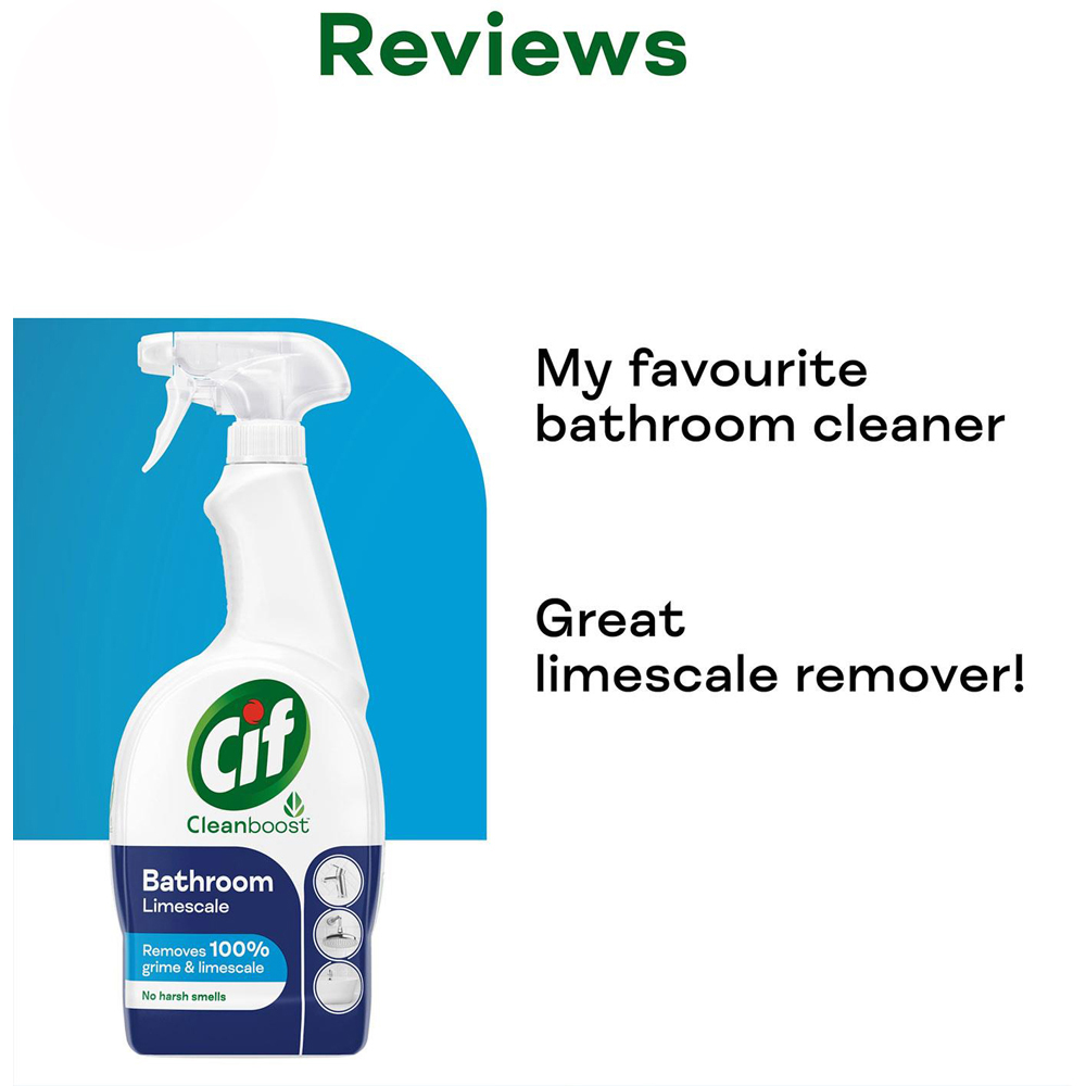 CIF Cleanboost Bathroom Spray will keep your bathroom sparkling for longer with its water and dirt-repellent technology. Powered by Cleanboost, it effectively lifts away 100% of soap scum and limescale from tiles and bathroom surfaces without leaving streaks, resulting in a clean, shiny home. Its versatility allows you to use it on your shower, tiles, grout, sink, or as a bath cleaner. This bathroom spray provides a 100% streak-free shine on various surfaces, including ceramic, chrome, enamel, plastic, and stainless steel, ensuring excellent results every time. Gentle on all types of surfaces, it is formulated to leave behind no harsh smells. For optimal cleaning results, spray the product onto the surface, let it sit for a few seconds, and then wipe it with a cloth. For tougher dirt, allow it to sit for a few minutes before wiping clean. Preparation and Usage: Spray onto the surface, leave for a few seconds, and then wipe with a cloth. Ingredients: <5% Non-Ionic Surfactant, Perfume, Phenoxyethanol. Safety Warning: Contains Methylchloroisothiazolinone and Methylisothiazolinone (3:1). May produce an allergic reaction.