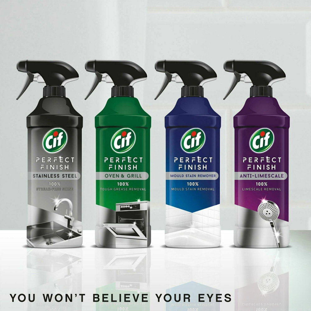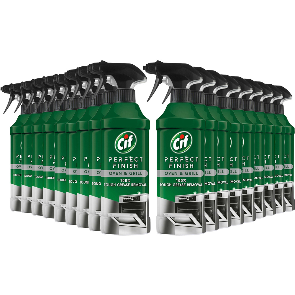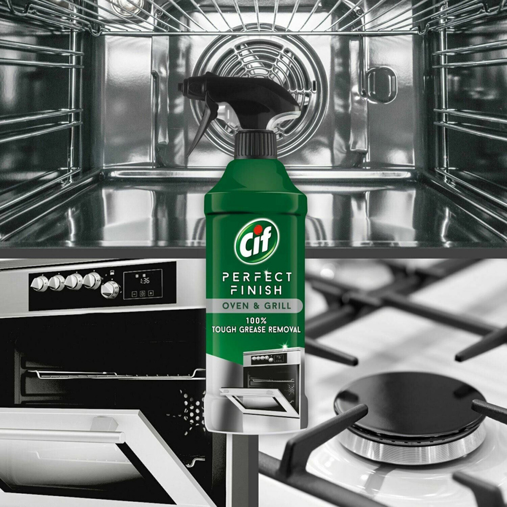 CIF Perfect Finish Oven and Grill Spray are formulated to effectively tackle tough grease and burnt-on food, leaving ceramic and stainless steel ovens sparkling. This spray are also suitable for use on outdoor cooking equipment such as barbecue grills. It has been scientifically formulated to cut through burnt-on grease, delivering 100% tough grease removal. Cutting through even the most difficult grease stains on your oven, grill, and hob leaves your surfaces with a beautiful finish. How to Use: Apply directly to cold surfaces until completely covered. Leave the spray to work for up to 30 minutes depending on the toughness of the soil, then rinse. Keep in a cool place and store upright. Also suitable for outdoor cooking equipment such as barbecue grills. Do not use oven trim, the pilot light, or heating and fan elements. Do not use self-cleaning ovens. In case of any doubt, refer to your oven's manufacturing instructions. Do not use on aluminium, copper, brass, marble, painted wood, or appliance lettering.