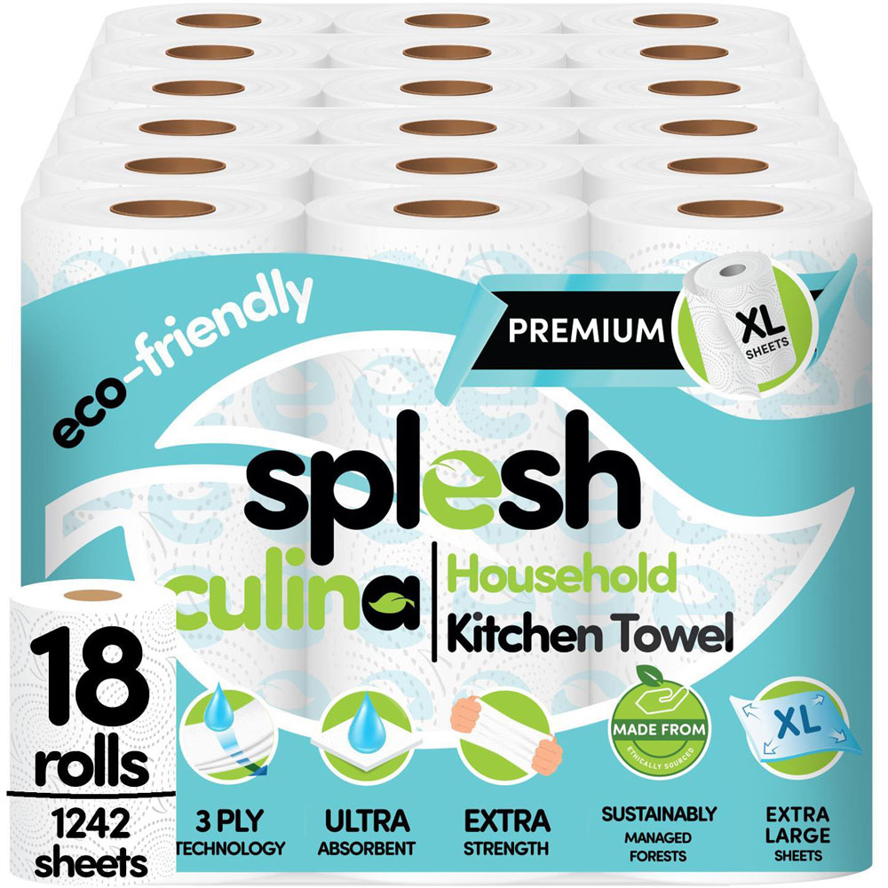 The Splesh Culina XL 3-ply kitchen towels are eco-friendly and sustainable household supplies made in the United Kingdom from ethically sourced materials. These kitchen towels are made of 3-ply paper that is extra soft, strong, and ultra-absorbent, perfect for soaking up spills, wiping away grease, and cleaning any surface with ease. Each XL roll has 69 super-sized sheets that are perforated for easy tearing and large enough to cover a wide area, reducing waste. Whether you need to clean your kitchen counter, stove, sink, or table, the Splesh Kitchen Towel will do the job perfectly. The Cif Power and Shine Kitchen Spray features powerful deep cleaning molecules that quickly lift away 100% of tough grease for an unbeatable streak-free finish. The lightweight formula contains orange and tangerine oils that start to cut through grease in just one wipe, leaving your kitchen surfaces sparkling with a zesty finish. Enjoy a streak-free shine on ceramic, chrome, and enamel surfaces – the first time, every time. Cif Power and Shine Kitchen Spray are also excellent for cleaning hobs and cooker hoods. The bundle includes 18 XL rolls of Splesh Culina Kitchen Towel and a 700ml bottle of Cif Clean Boost Kitchen Degreaser Spray. Safety warning: Keep out of reach of children. If In Eyes: Rinse cautiously with water for several minutes. Remove contact lenses, if present, and easy to do. Continue rinsing. If eye irritation persists, Get medical advice and attention.