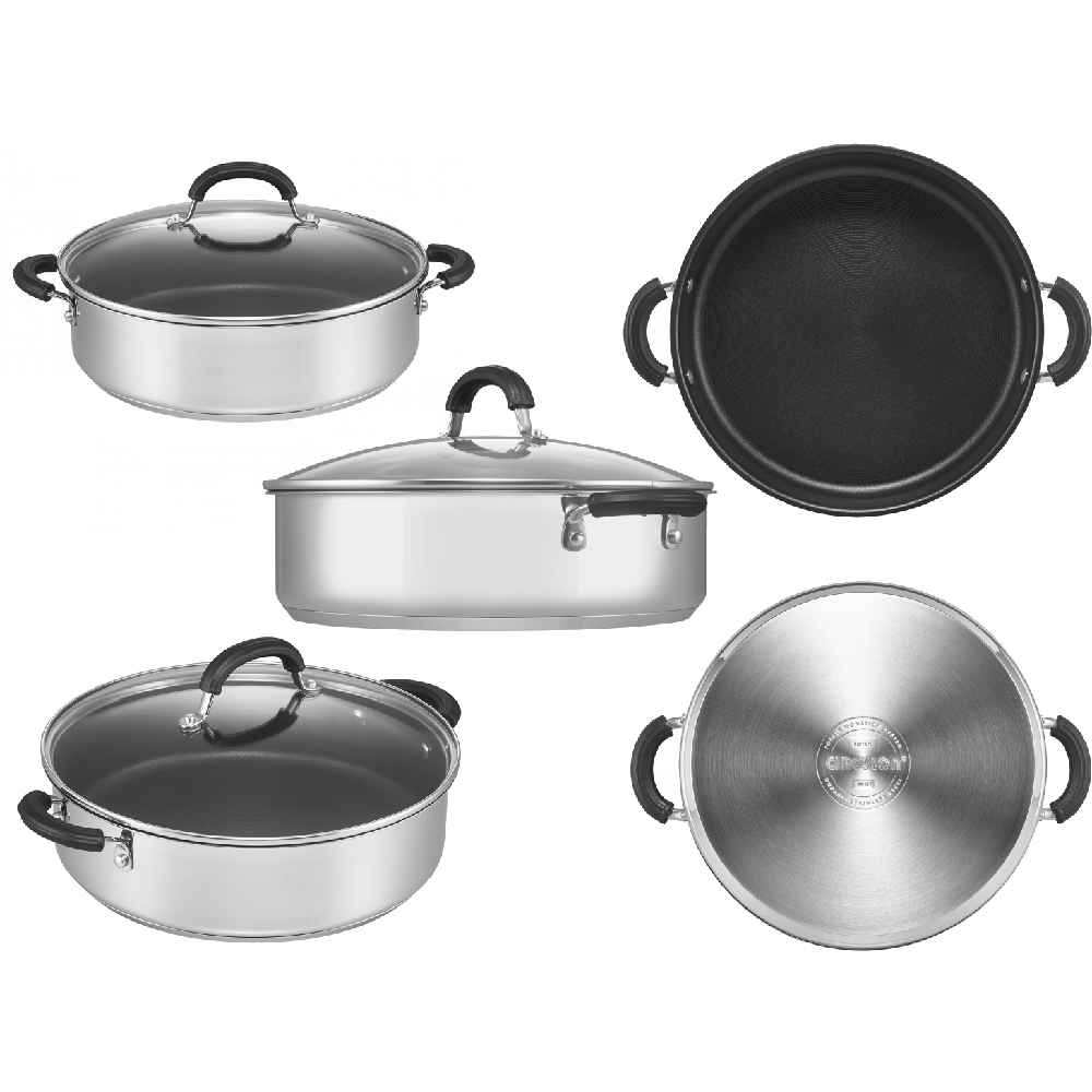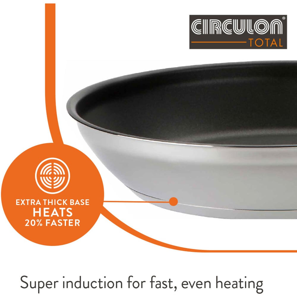 Discover the pleasure of cooking with the Circulon Total 30cm Nonstick Stainless Steel Sauteuse. This cookware is equipped with an advanced 3-layer non-stick, ensuring superior food release, and can be used on all hobs, including induction. With a remarkable hard anodized construction, it's designed to last 15 times longer for oil-free cooking. The cookware is twice as hard as stainless steel and non-stick on the outside, making it perfect for even the most challenging kitchen tasks while maintaining its flawless appearance. The high heat-resistant handle ensures a comfortable grip, while its exceptional non-stick durability makes it dishwasher-safe and metal utensil-safe. The hard anodized body provides excellent durability and quick, even heating, making it an ideal addition to your kitchenware. Plus, it's oven-safe up to 180°C, making it perfect for all your cooking needs.
