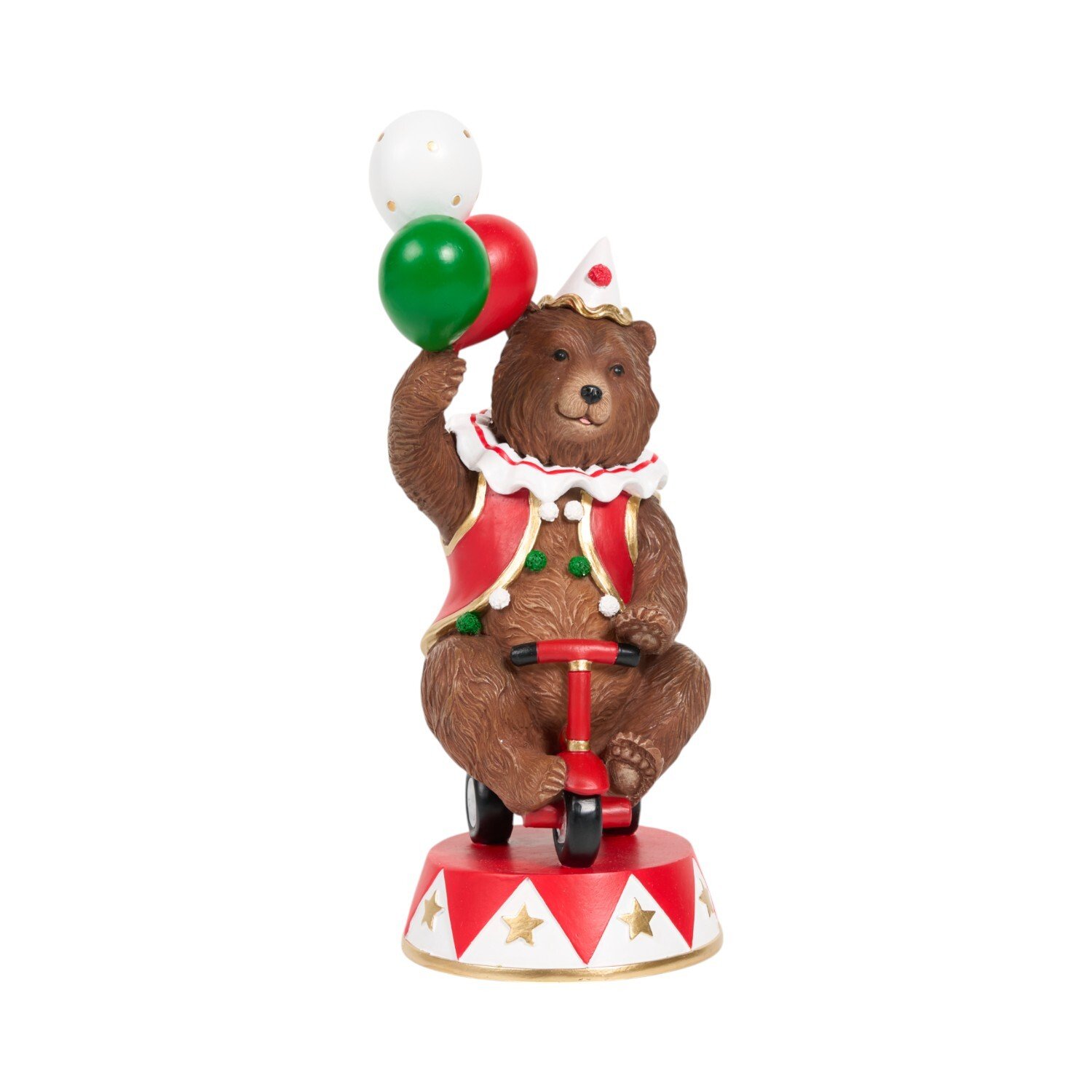 Bring a touch of whimsy to your holiday decor with the Circus Christmas Bear Standing Decoration. Dressed in a playful outfit and holding colourful balloons, this delightful bear rides a tricycle and adds charm, movement, and a joyful spirit to your seasonal display. Perfect for tabletops, mantels, or as a standout piece in your Christmas collection, it's sure to enliven your home instantly.