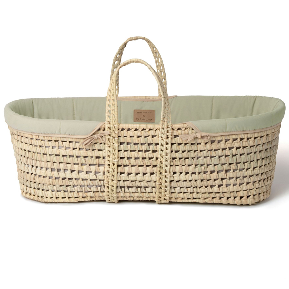 Introducing the Clair de Lune Organic Palm Moses Basket, designed with eco-conscious parents in mind. Crafted from sustainably sourced materials, this Moses basket brings together natural elegance and comfort for your newborn. Eco-Friendly and Sustainable Design – Handwoven from durable, natural palm leaf and dressed in 100% organic cotton, this Moses basket reduces environmental impact, giving parents a stylish, natural sleep solution that supports a greener planet. Premium Natural Bamboo Mattress – Equipped with a hypoallergenic bamboo mattress made from coir coconut fibre and wool, it provides optimal breathability, natural temperature regulation, and protection against allergens, creating a clean, comfortable sleeping space. GOTs Certified Organic Dressing – This stunning Organic range is crafted from hypoallergenic and breathable GOTs-certified Cotton which means it is better for the skin, helping ensure your baby’s comfort and sleep. It has also been tested for OEKO-TEX Standard 100. Complete with Essentials – Each basket includes a super-soft cream Moses basket sheet, removable organic dressing, a natural rocking stand, and a firm bamboo mattress, giving you everything you need for your baby’s first sleeping space in one bundle. Sustainably Made in the UK – This Moses basket showcases the finest organic materials with a commitment to quality and sustainability. Suitable from birth up to 9 kg (or until your baby can roll over, pull up, or sit unaided), the Clair de Lune Organic Palm Moses Basket offers comfort, style, and peace of mind for eco-conscious families. Do not carry the Moses basket while your baby is inside.
