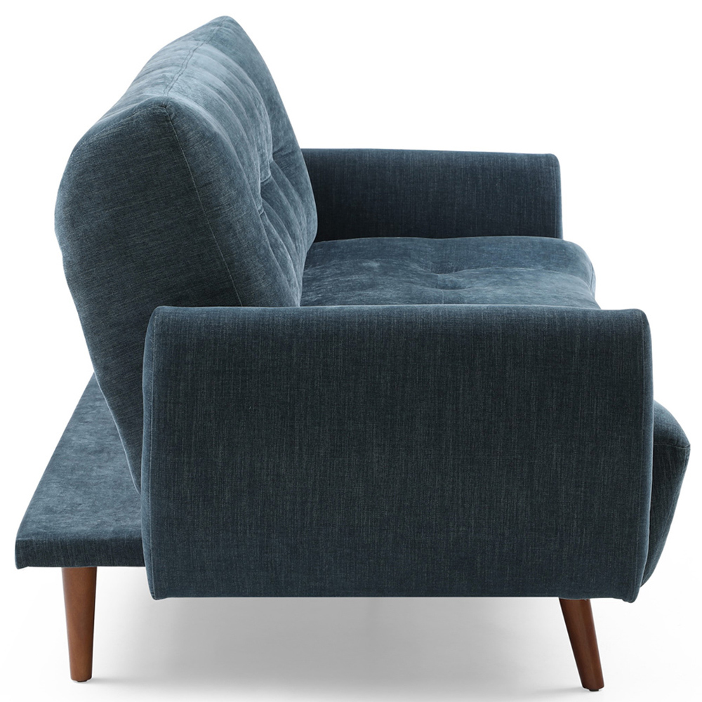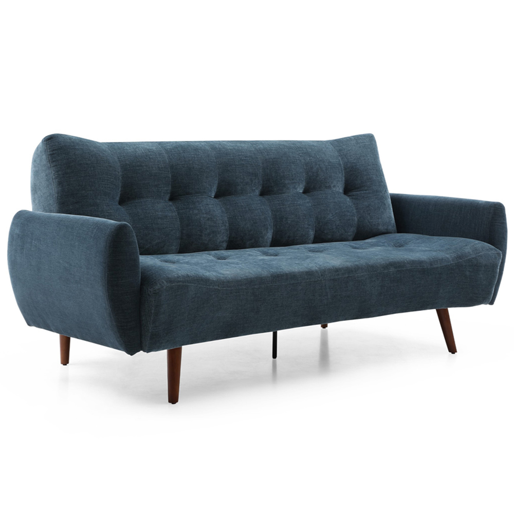 Make an exquisite addition to your home decor with the Claire 3 Seater Navy Sofa. This double sleeper sofa has been designed to complement both traditional and modern interior spaces. This sofa bed is upholstered using soft chenille fabric with cosy foam and fibre padded seating and a firm backrest. It can be easily converted into a comfortable bed with the click-clack mechanism. This sofa bed features sturdy walnut wooden legs for stability and support.