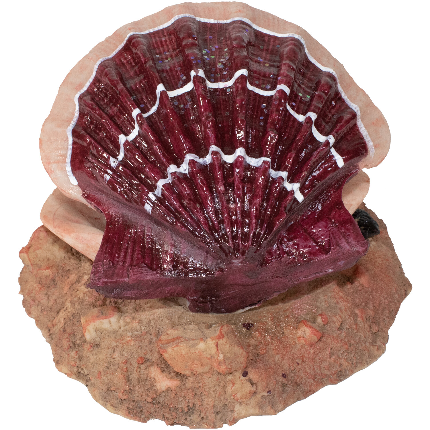 This attractive Clam Shell tank decoration is the perfect addition to your home aquarium. Made of high-quality, safe, and non-toxic resin this decorative clamshell will add charm and appear to your fish tank for both you and your fish! Accented with sparkles and its own pearl and set on a beach-inspired base, this tank decor is safe for both fresh and salt water aquariums.