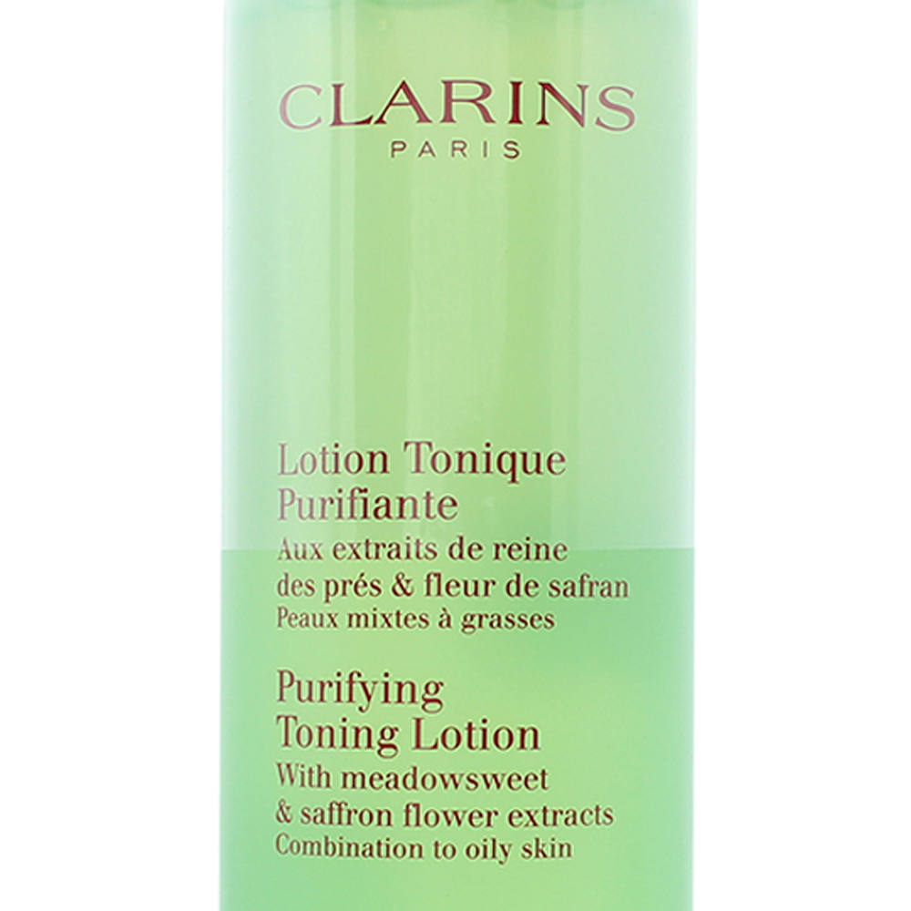 Clarins Toning Lotion for Combination/Oily Skin has been designed to be gentle to skin and help balance the skin's microbiota. The lotion helps to tone, hydrate and purify skin, whilst removing cleanser and leaving skin feeling soft, refined and shine-free. The lotion is alcohol-free and contains Kelp and Saffron Flower, which work together to balance the microbiota, and Meadowsweet, which purifies the skin and reduces shin.