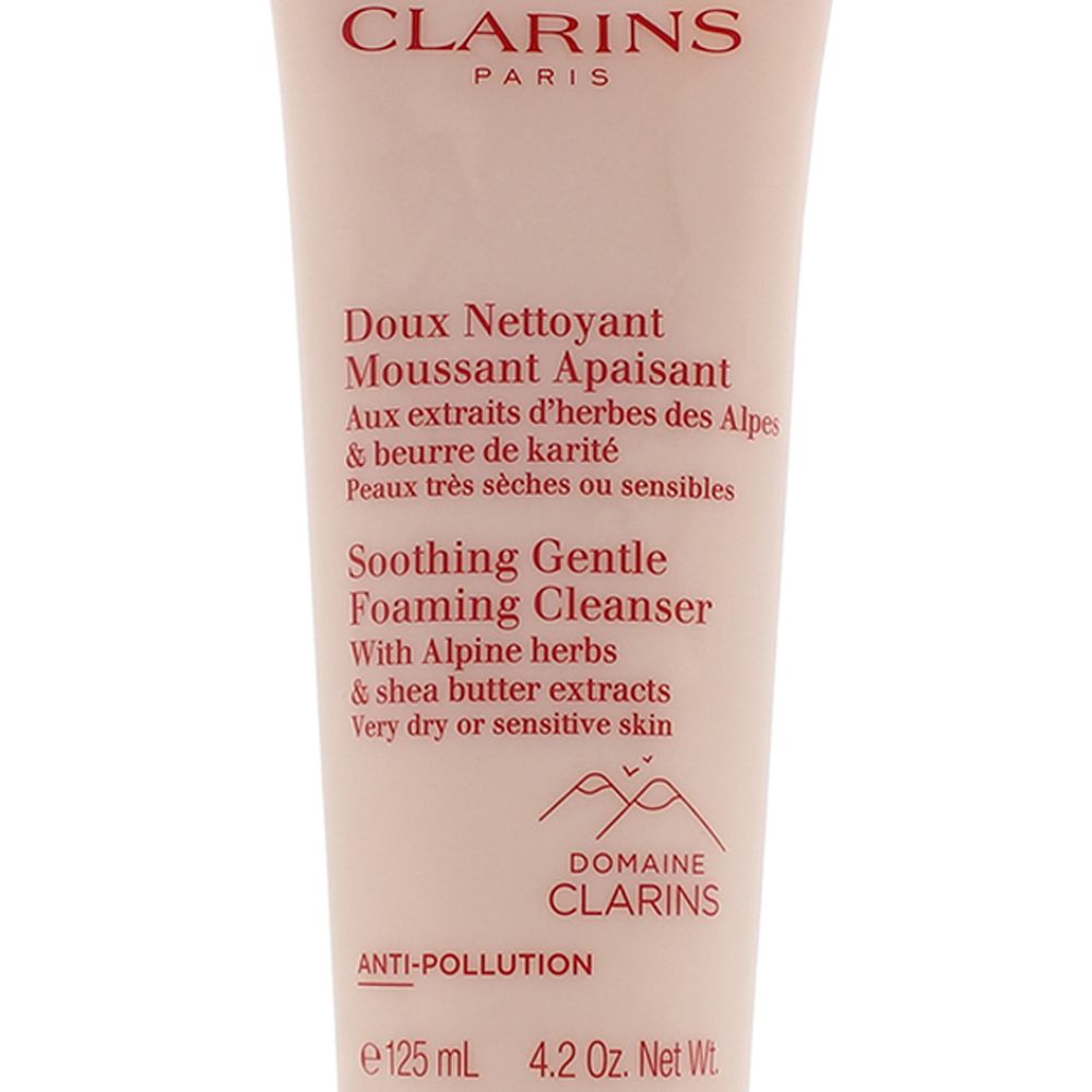 Clarins Soothing Gentle Foaming Cleanser incorporates a blend of natural ingredients carefully chosen to cleanse and purify the skin without stripping away its natural moisture. The cleanser effectively removes impurities, excess oil, and traces of makeup, leaving the skin feeling refreshed, clean, and radiant. Formulated with soothing, purifying Alpine herbs that help calm and comfort the skin, making it ideal for those with sensitive or reactive skin types. These ingredients work together to enhance the skin's natural radiance, giving it a healthy and youthful appearance.