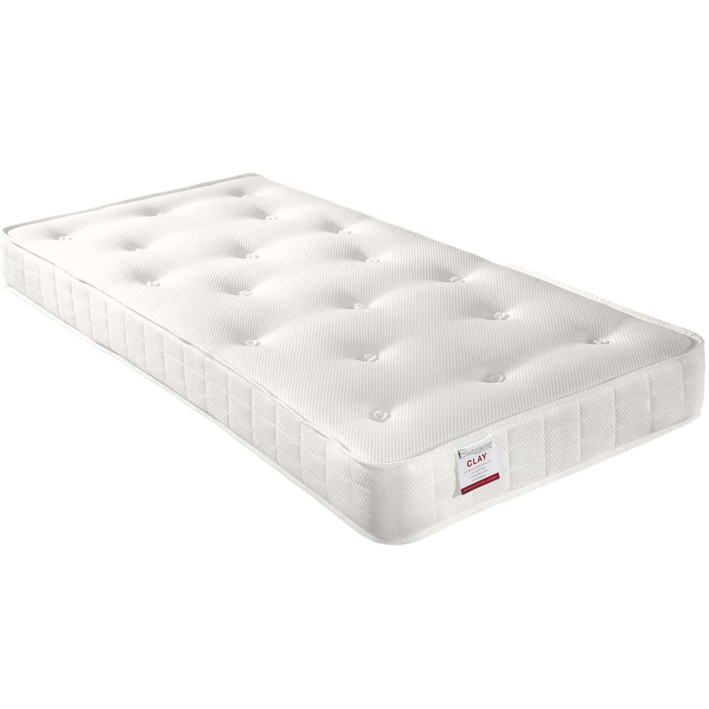 The Bedmaster Clay Small Double Mattress is a hand-tufted orthopaedic mattress with a 12.5 gauge open coil construction. It is suitable for bunk beds and guest beds. This mattress has a low profile design and a depth of 15.5cm. It is also tested to meet the BS7177 standards for safety. Don't forget to turn and rotate this mattress for optimal use.