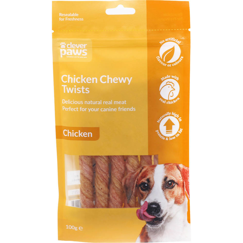 These Chewy Chicken Twists from Clever Paws are a delicious meaty treat for your furry friend. Kept in a resealable bag for freshness, these tasty chicken chews are made with real natural meat for a succulent flavour your dog is sure to love.