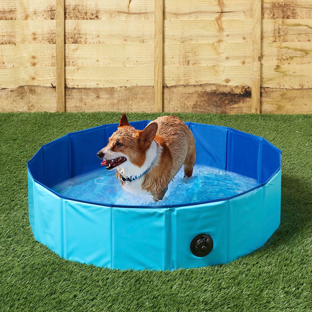 Keep your beloved pooch pal cool this summer with the useful Doggy Pool from Clever Paws. The easy to set up pool requires no inflation - simply unfold it and you're good to go! Made from sturdy plastic with reinforced walls, you can fill it with a small amount of water so your pup can splash around the garden during those hot days. The easy empty valve and folding system make it easy for you to tidy up when the day is done.