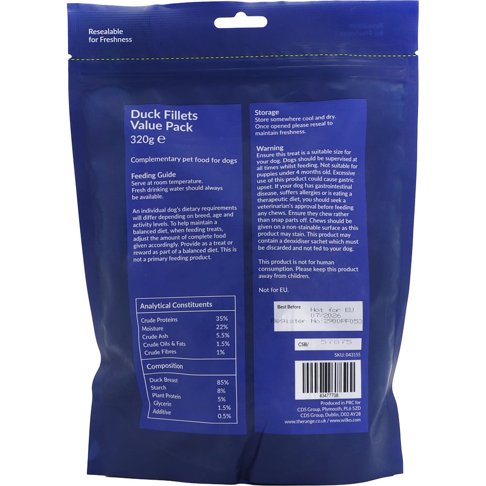 Totally tasty for any dog, this pack of Clever Paws Duck Fillets Value Pack makes a wonderful meaty treat for your furry friend. Made with real duck meat and ideal for giving as a treat or as an incentive during training as part of a balanced diet, these are bound to become your dog's favourite snack. They also come in a resealable bag so they stay fresher for longer.