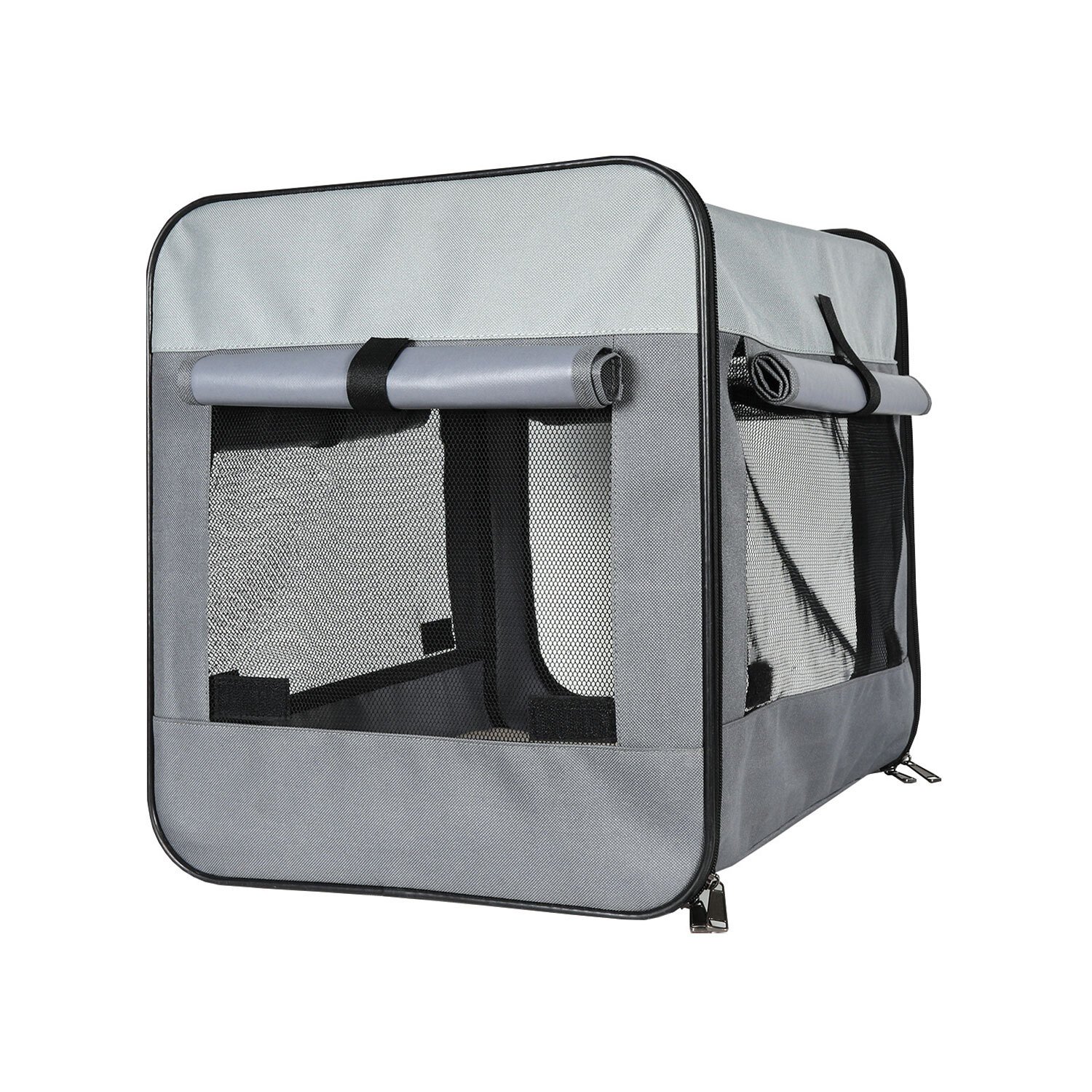 Let your furry friend travel in style and comfort with the Soft Pet Kennel. This lightweight carrier is perfect for travelling with your pet and doubles as a handy bed whilst holidaying. Featuring soft mesh, flexible air circulation panels on all sides and a removable, fur-covered cushion, this carrier has everything your pet needs to be as comfortable as possible while on the go. This product is intended to provide a snug space for your pet to relax in that is easy to reposition. Made from fabric, this lightweight kennel is designed to be an easily transportable mobile home for your pet. Ideal for camping and day trips alike, offering them shelter and privacy. This crate is not suitable for all pets, especially those prone to chewing as it contains small parts such as zips. If your pet has a chewing habit a metal crate may be more suitable. Not suitable to be used as a pet carrier.