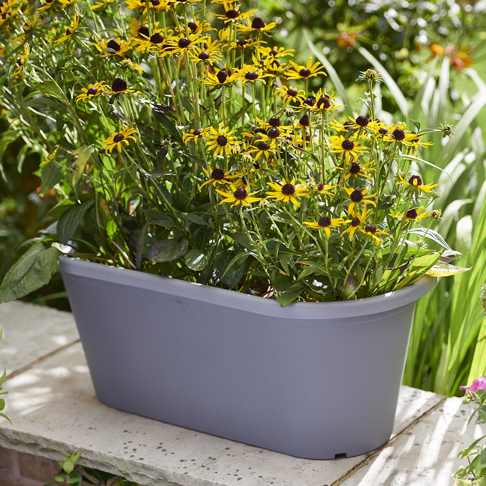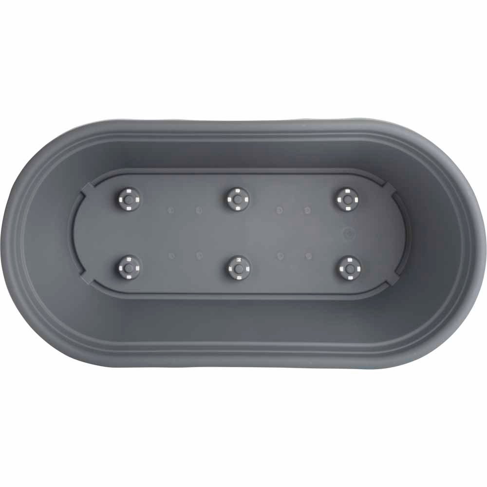 Made from durable Polypropylene plastic, the Clever Pots 60cm Grey Long Trough Pot (15L) is perfect for growing plants indoors and outdoors, including outbuildings and greenhouses. It's designed to be used with our range of accessories so you can make the most of your growing space. The trough has a handy wide rim designed so it can be easily moved. The rim also discourages pests such as slugs and snails from crawling up and into the trough. The small feet promote airflow around the base of the pot and roots. For additional drainage the pierce points in the base of the pot can be punctured as required. This 60cm trough is available in Grey and Terracotta colours. Made from 30% recycled plastic, weather resistant, UV colour stable and ideal for outdoor use these troughs can be used season after season and can be recycled at the end of its life. The troughs can also be used together with intuitively designed accessories. Note: Take care while piercing holes for drainage. Dimensions: D 30.3 x W 60 x H 24.1cm.