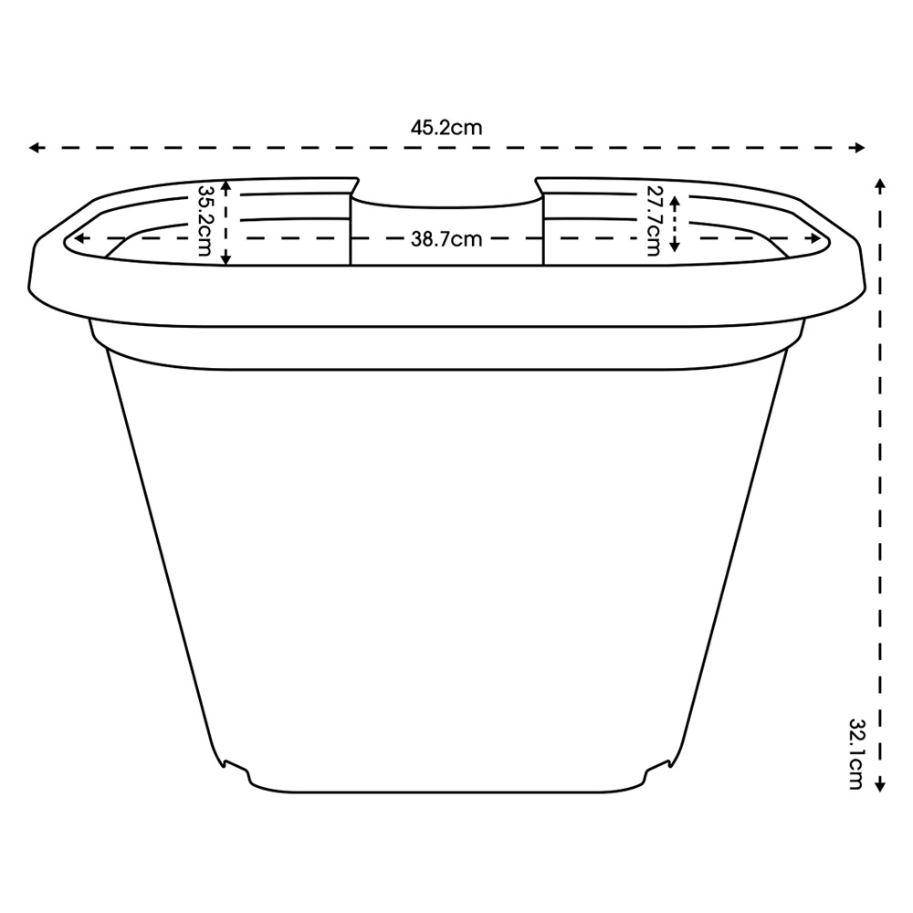 Maximise your gardening potential with the Clever Pots 20L Downpipe Pot in sage green, the ultimate solution for utilising otherwise wasted space at the base of downpipes. This innovative planter includes a reservoir, allowing plants to be watered with minimal maintenance. Crafted from 30% recycled polypropylene, it is UV colour-stable, ensuring longevity and recyclability. Easily create additional drainage with pre-pierced points. Specifically designed to fit standard UK downpipes, this pot is perfect for brightening your outdoor area. Dimensions: D35.3 x W45.3 x H32.2 cm.