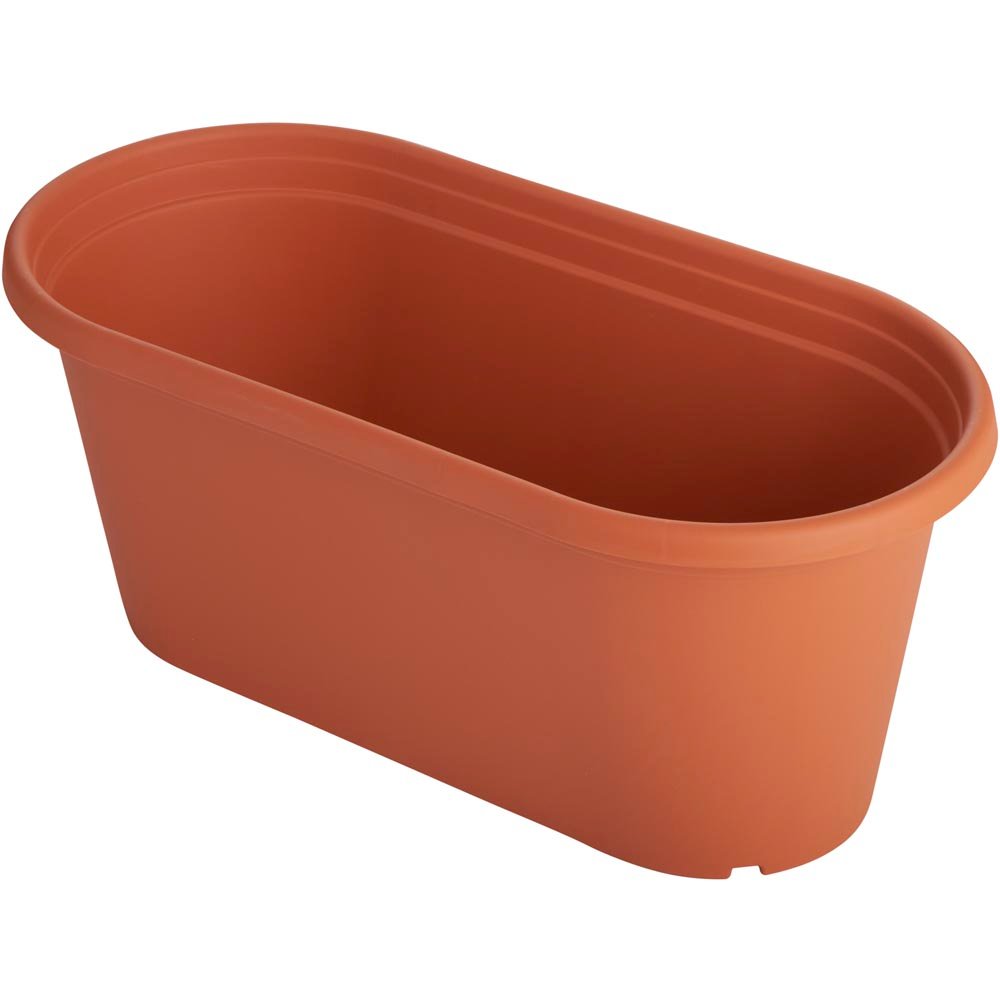 Made from durable Polypropylene plastic, the Clever Pots 60cm Terracotta Long Trough Pot (15L) is perfect for growing plants indoors and outdoors, including outbuildings and greenhouses. It's designed to be used with our range of accessories so you can make the most of your growing space. The trough has a handy wide rim designed so it can be easily moved. The rim also discourages pests such as slugs and snails from crawling up and into the trough. The small feet promote airflow around the base of the pot and roots. For additional drainage the pierce points in the base of the pot can be punctured as required. This 60cm trough is available in Grey and Terracotta colours. Made from 30% recycled plastic, weather resistant, UV colour stable and ideal for outdoor use these troughs can be used season after season and can be recycled at the end of its life. The troughs can also be used together with intuitively designed accessories. Note: Take care while piercing holes for drainage. Dimensions: D 30.3 x W 60 x H 24.1cm.