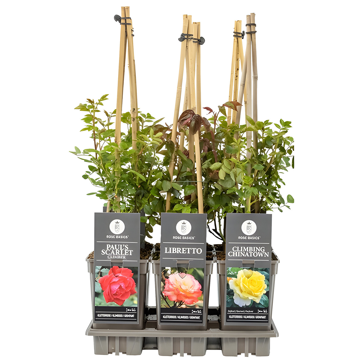 Climbing Roses are a stunning choice for any garden. Their ability to add colour and elegance makes them perfect for trellises, walls, or even as part of a mixed planter. Whether you’re looking for a dramatic focal point or a soft, romantic vibe, roses can help achieve that vision.