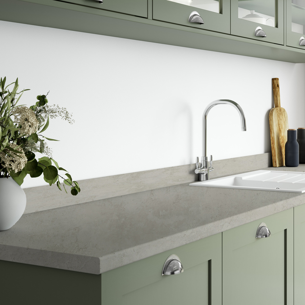 Add a modern touch to your kitchen with the beautiful and practical Cloudy Cement Laminate Worktop. Designed to mimic the appearance of light concrete, this laminate has all the benefits of a durable, easy-to-clean surface that’s perfect for high-traffic areas and busy households.