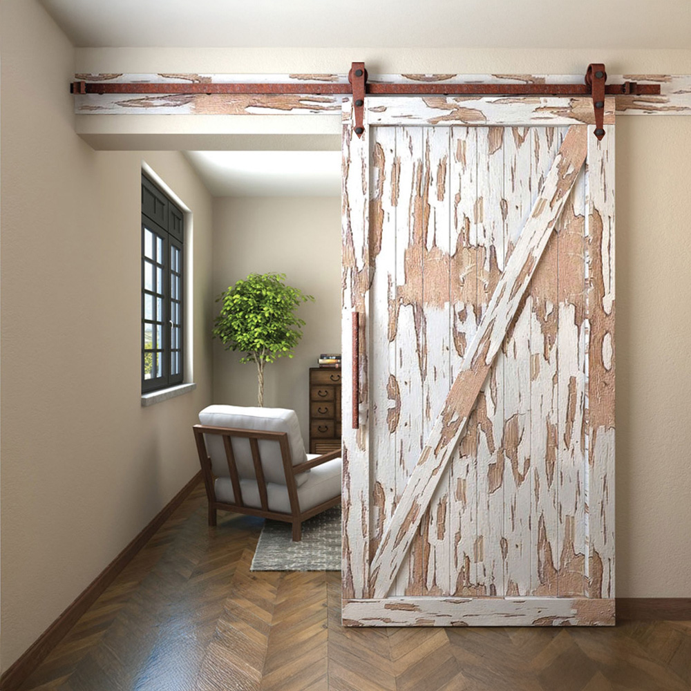 Flat Track 100 is a top hung system for single sliding room entrance doors. The barn door style hardware features exposed fittings for a rustic look and it is perfect for interior home renovation projects. Please note that doors are not included.