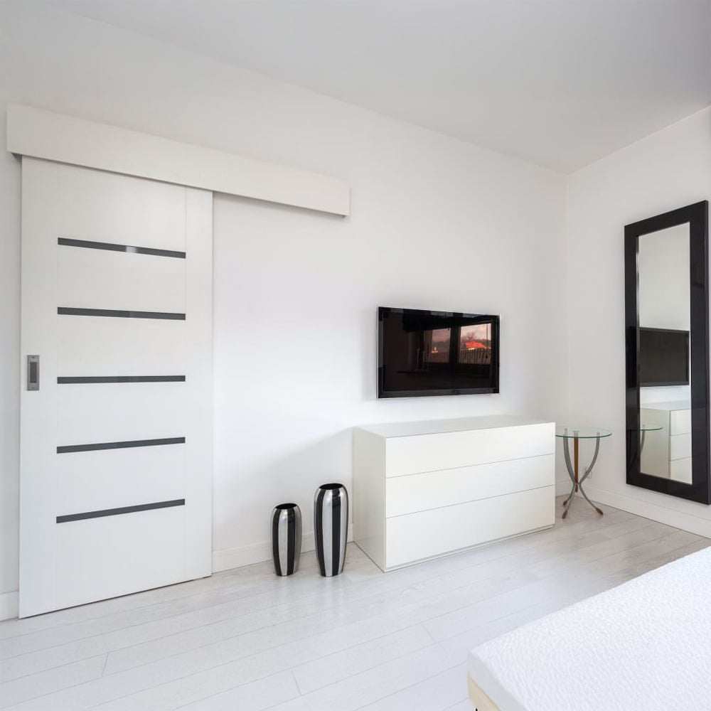 Flyaside Panther is a top hung sliding door system for heavier room entrance doors. Ideal for where there is limited space for a full length track. Please note that doors are not included.