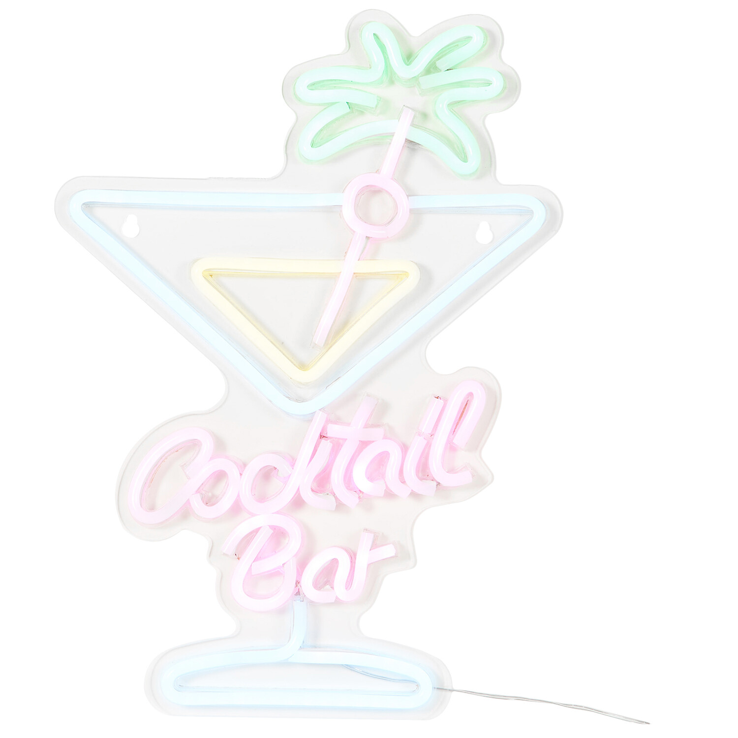 Complete your party decor with this Cocktail Bar Neon Sign. Super cool and stylish, this neon sign infuses your space with holiday fun thanks to its cocktail glass design. The handwritten style of the sign creates a personal feel, whilst the multicolour light illuminates the potential of your space.