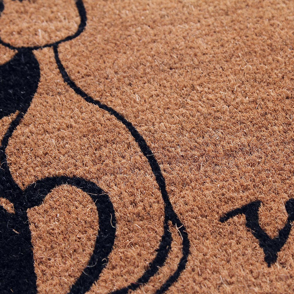 Connected at the heart, the feline pair gives this welcome mat a lovable look that gives a warm, wholehearted welcome to all your visitors. This indoor and outdoor mat is made from natural coir bristles, which come from coconut fibre. It is eco-friendly and durable, making it ideal for workplaces, potting sheds, conservatories and other entrances. The mat is thick and has a ridged surface that helps clean dirty shoes without being bulky. It is highly absorbent and built to last for everyday use.