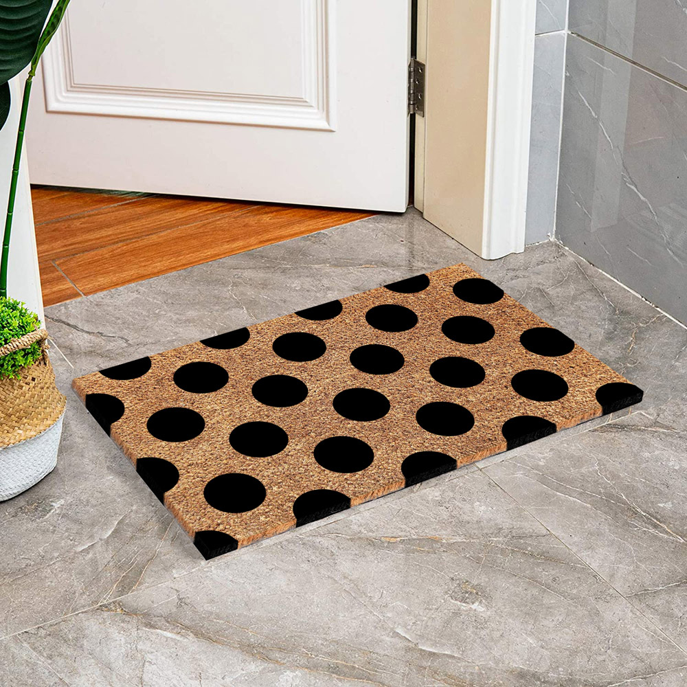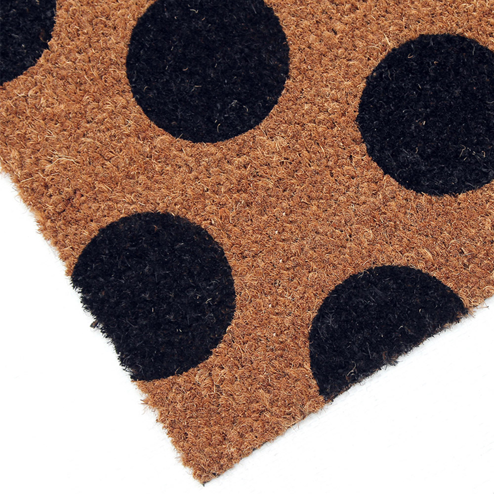 The iconic polka-dotted print is simple, subtle and chic yet fun, playful and oh-so posh. Beautify your front doorstep, stoop, porch or patio with a spotted abstract welcome mat that is a surefire printed classic. This indoor and outdoor mat is made from natural coir bristles, which come from coconut fibre. It is eco-friendly and durable, making it ideal for workplaces, potting sheds, conservatories and other entrances. The mat is thick and has a ridged surface that helps clean dirty shoes without being bulky. It is highly absorbent and built to last for everyday use.