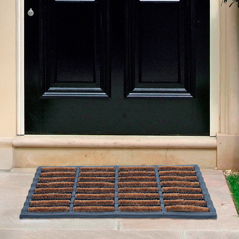 Use the natural coir bars built into the doormat's top surface to scrape ice, snow and sludge from boots and shoes before entering the home to keep floors clean and slip-free. Tough guy by name, tough guy by nature. This indoor and outdoor mat is made from natural coir bristles, which come from coconut fibre. It is eco-friendly and durable, making it ideal for workplaces, potting sheds, conservatories and other entrances. The mat is thick and has a ridged surface that helps clean dirty shoes without being bulky. It is highly absorbent and built to last for everyday use.