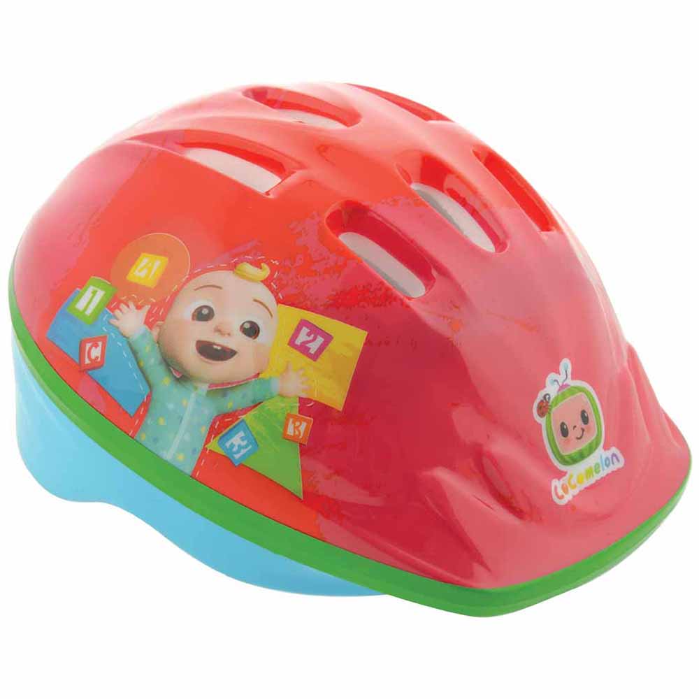 Keep your child safe while cycling, scootering or skating with this CoComelon Safety Helmet. Designed with a bright all-over lovely character print, this helmet provides excellent durability with comfort. The adjustable straps and rear size dial make sure a snug but secure fit for head sizes 46-52cm. It has ventilated shell and removable pads that allow a soft, airy feel when riding. For additional safety and ease of use, it features an easy to use, quick-release buckle. Ideal to provide an extra safe riding experience, the kid's helmet is a must-have riding essential.