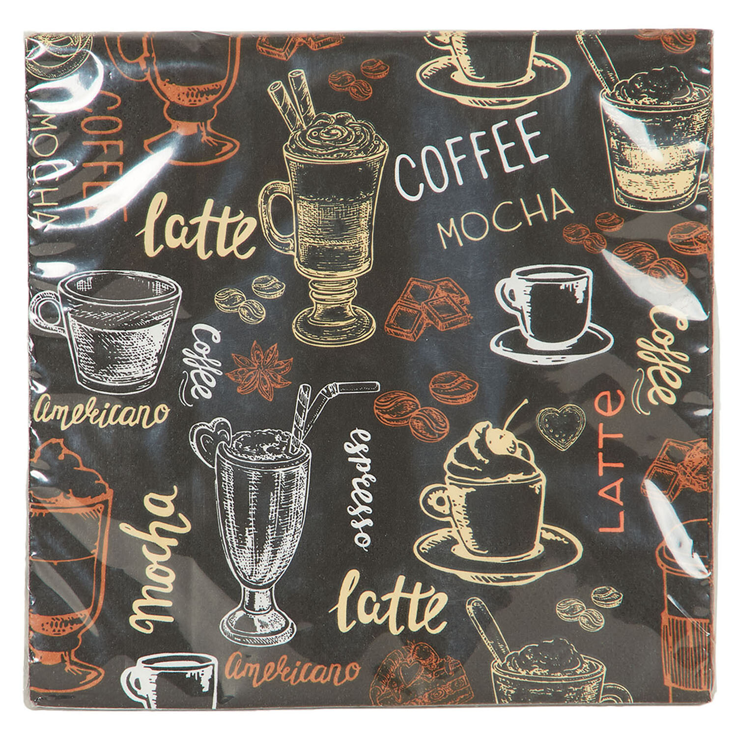 Elevate your table decor with the Coffee Napkins. These napkins are adorned with a charming coffee print that's great for bringing cafe charm to your very own tabletop. They're super absorbent and can be used to serve slices of cake along with coffee or to keep your table clean.