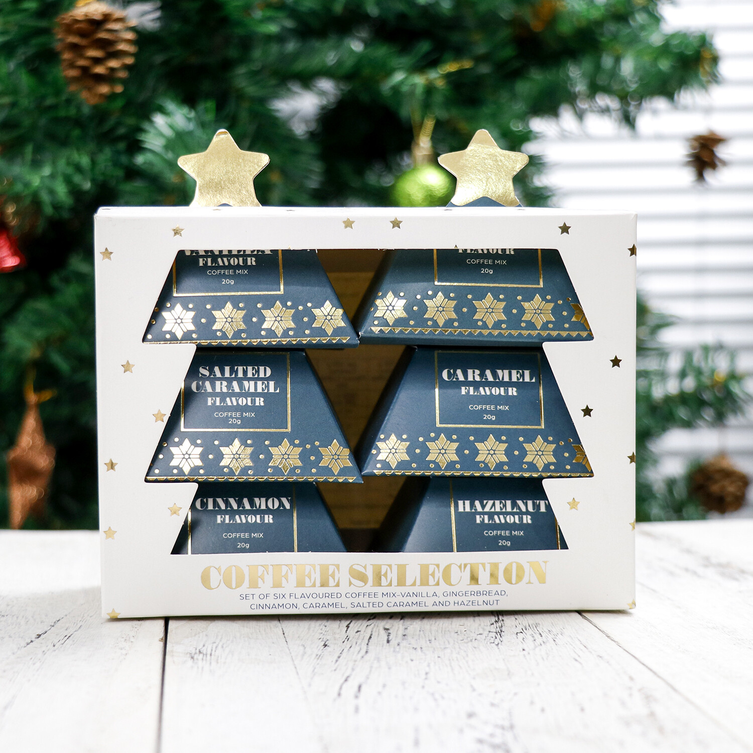 Treat a coffee fan this Christmas to this fabulous Coffee Selection. This gift set features a mixture of coffee flavouring mixes in 20g paper cartons and includes Vanilla, Gingerbread, Cinnamon, Hazelnut, Caramel, and Salted Caramel flavours. Perfect as a Secret Santa present, spoil someone who loves a hot drink this Christmas.