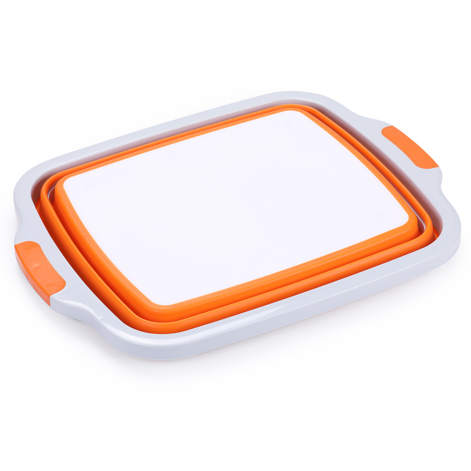 The Collapsible Sink and Cutting Board is a fantastic addition to any kitchen, tent or caravan. It provides a lot of space for washing up plates, cups, and cookware, and for food prep, once you're done, you can easily collapse it and store it away. It's made from durable plastic, so it's easy to clean and maintain.