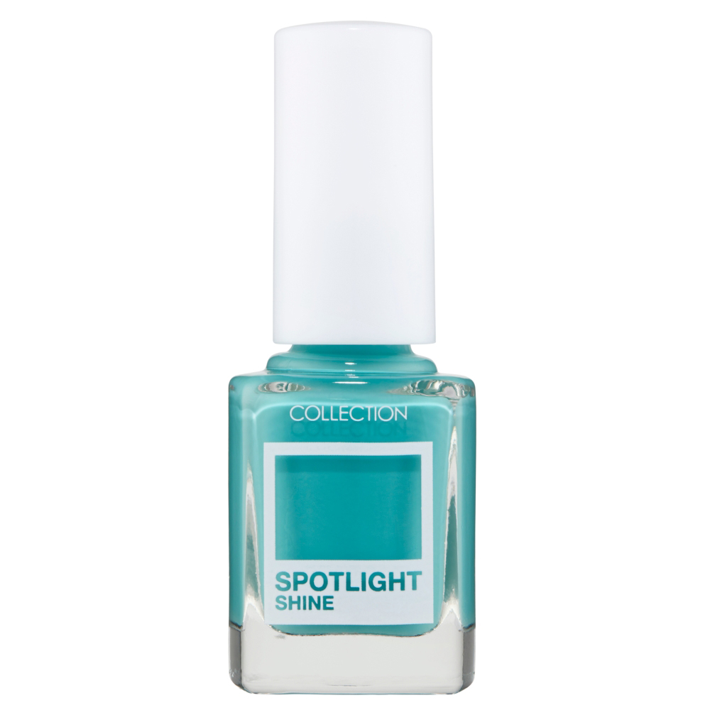 Get salon-style nails at home with Collection Spotlight Shine Nail Polish. Featuring a smooth, wide brush for easy and mess-free application - this long-wearing nail varnish gives a vibrant glossy finish. Shade: 31 Maldives. Pack size: 10.5ml. Usage: Shake well. Apply two coats. Use with spotlight shine top and base coat.