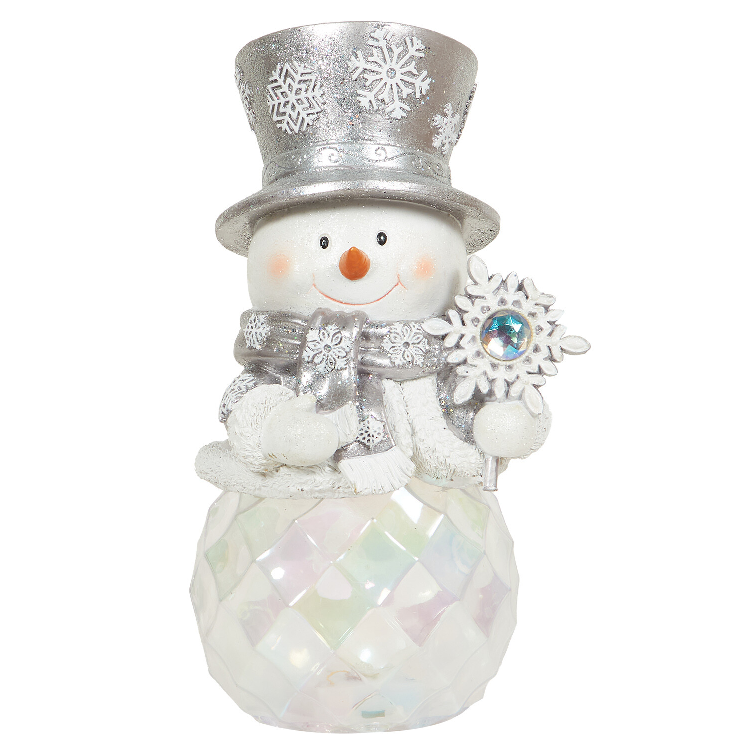 Add a festive glow to your home with this Colour Changing LED Snowman. Adorned with snowflakes and glitter, this snowman decoration features colour-changing LED lights to brighten your Christmas decor. Super adorable, it will make a fantastic addition to mantels, shelves, tabletops and more.