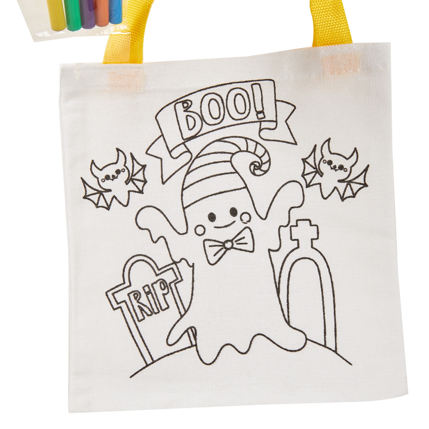 Get creative and stylish with the Colour Your Own Halloween Canvas Bag. Featuring an assortment of fun designs, it includes pens to get started right away. Once finished, the bag is perfect for carrying essentials on the go, making it both a fun activity and practical accessory.