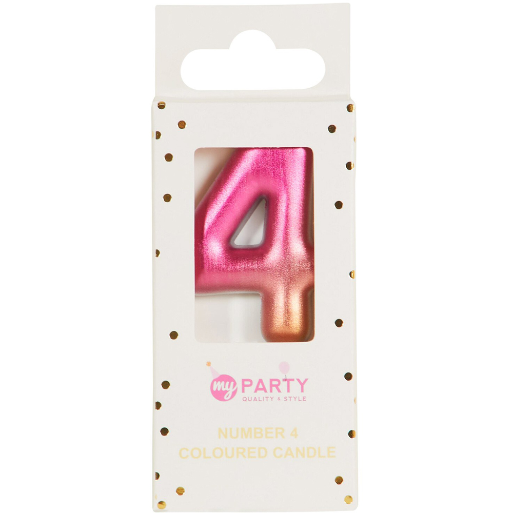 Brighten your birthday celebrations with the Coloured Number Candle. This candle features a vibrant metallic pink design that'll add a sparkly touch to your special day. You can select from a variety of numbers to match your age, using just a single candle or pairing it with another candle to adorn your cake.
