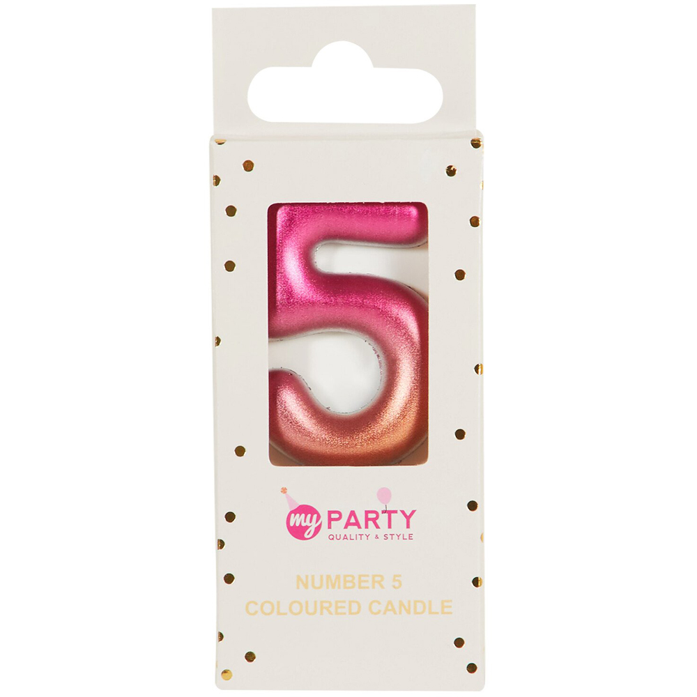 Brighten your birthday celebrations with the Coloured Number Candle. This candle features a vibrant metallic pink design that'll add a sparkly touch to your special day. You can select from a variety of numbers to match your age, using just a single candle or pairing it with another candle to adorn your cake.