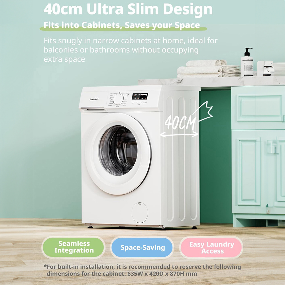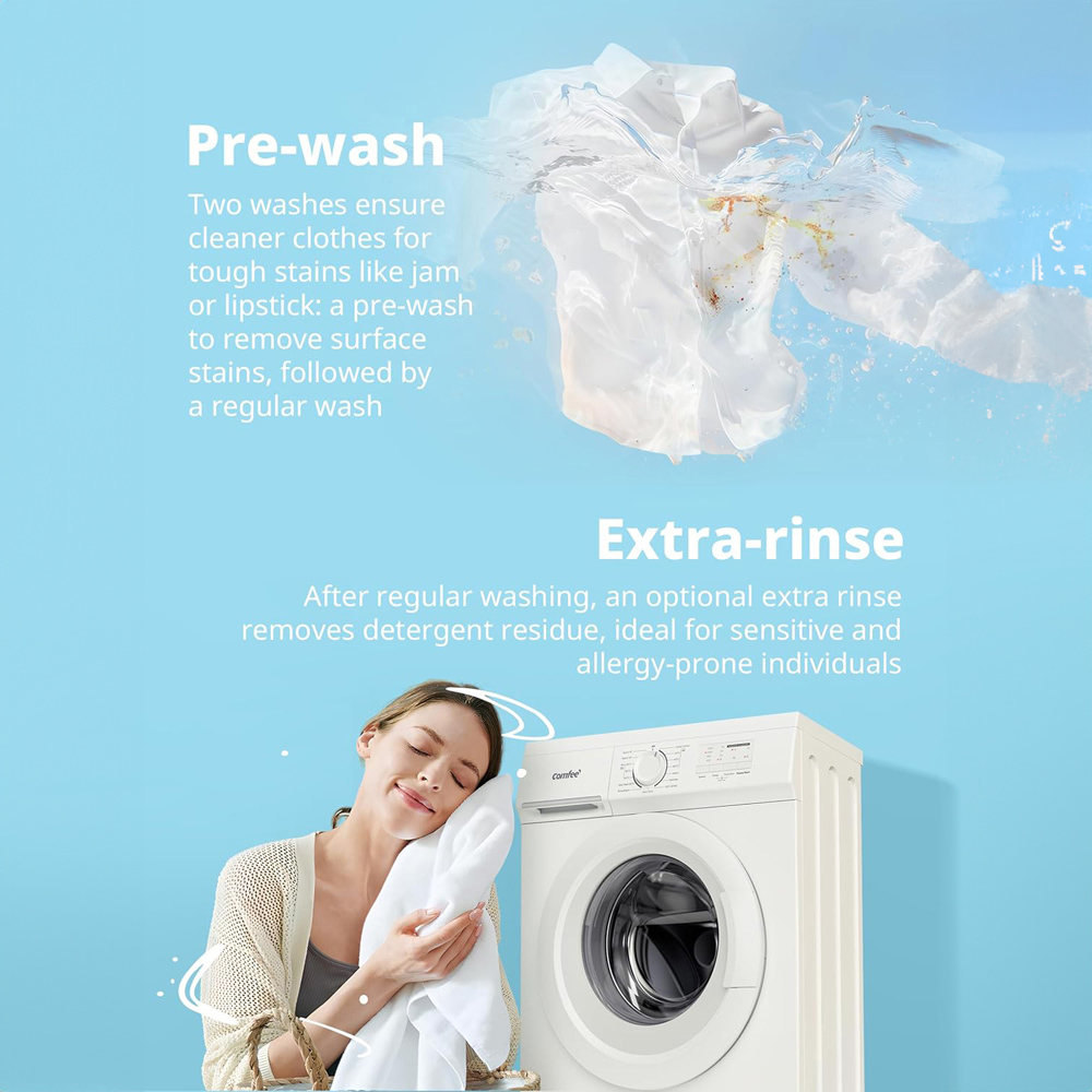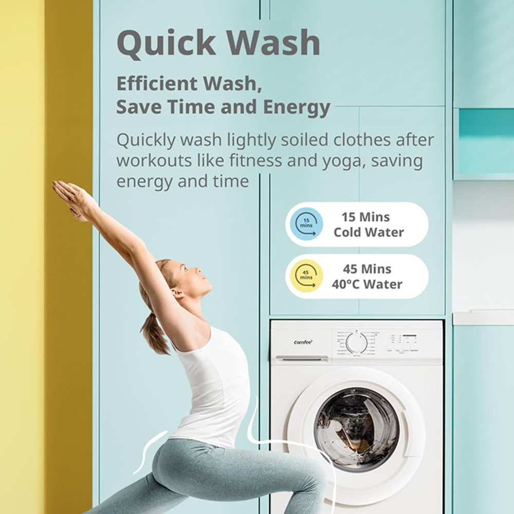 Elevate your laundry with the Comfee 6KG Freestanding Washing Machine with 90℃ Heat Wash. This machine is perfectly sized for singles, couples, or small families handling your everyday laundry needs. Its ultra-slim design makes it a perfect fit for various living environments. You can choose from 15 different washing programs tailored to your specific laundry requirements. The 15-minute and 45-minute Quick Wash programs provide fast and efficient cleaning when in a hurry. Whether it's delicate fabrics or heavily soiled clothes, there’s a setting for every type of load.