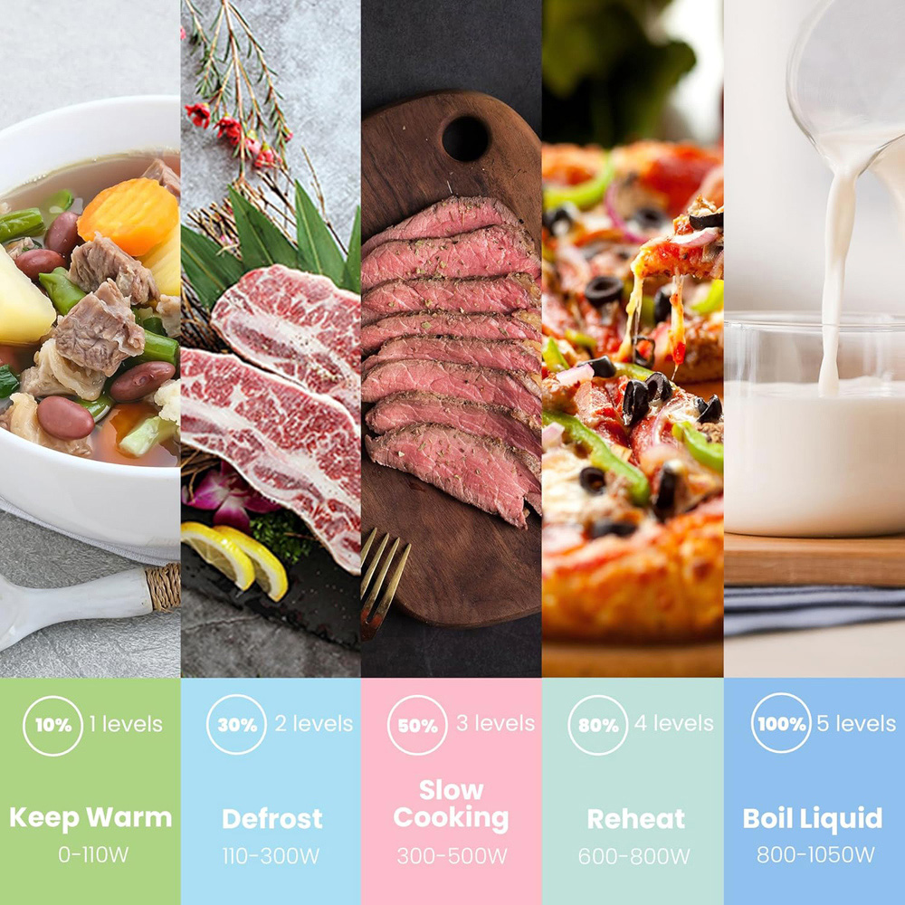- Weight and time defrost algorithms, and quiet even-heating technology