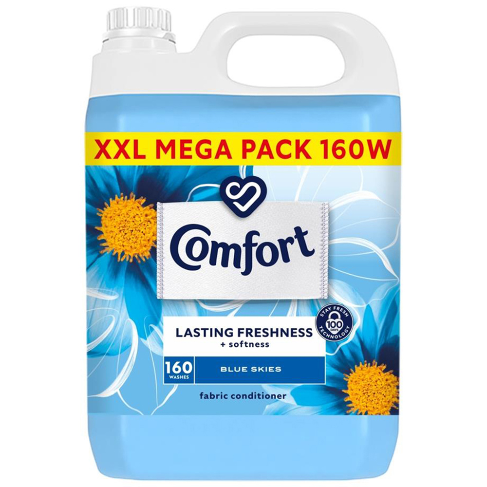 We know you love your clothes. We love clothes too, and we want to help you care for them. That's why we've developed Comfort Blue Skies Fabric Conditioner to keep clothes fresh and clean long after each wash. This fabric softener features Stay Fresh technology, designed to lock in fragrance, to deliver 100 days of freshness and fragrance. This fabric softener features a long-lasting fragrance combining zesty citrus and floral rose with a musky sandalwood base to leave your clothes smelling fresh and clean. The Comfort Fabric Conditioner bottle is made of 100% recycled plastic and is 100% recyclable. Add Comfort to your wash to help protect your clothes and leave you feeling great inside and outside every day. Comfort Fabric Conditioner also ensures your clothes smell their very best, wash after wash. Together, we can help protect the clothes you love. Features: Enjoy 100 days of freshness and fragrance with Comfort Blue Skies Fabric Conditioner Comfort features Stay Fresh Technology which is designed to lock in fragrance, giving clothes 100 days of freshness This Blue Skies fabric softener leaves your clothes smelling fresh with the sensational long-lasting fragrance of zesty citrus and floral rose with a sandalwood base With our fabric conditioner, let your favourite jeans fly you away to a fresh meadow with a bright blue sky breathe in the fresh air, freshly cut grass and summer floral scents any time of year The bottle for this Comfort Fabric Conditioner is made of 100% recycled plastic and is 100% recyclable Let the fresh fragrance bursts of Comfort Fabric Conditioner take you to a happy place because when your clothes smell good, you feel good all day long Safety Warnings: Contains Benzisothiazolinone. May produce an allergic reaction. Package Includes: 2 x Comfort Blue Skies Fabric Conditioner, 160 Washes.