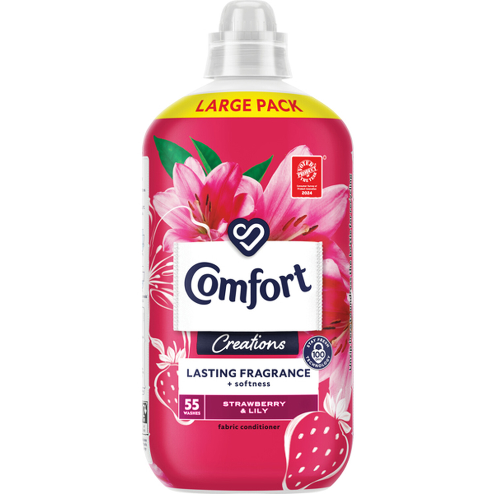 Refresh your laundry routine with Comfort Creations Strawberry and Lily Fabric Conditioner 55 Washes 1.65L, providing all-day odour defence. Just add it to your wash along with detergent for enduring freshness and an exquisite fragrance. Your clothes will emerge remarkably soft and delightful to wear.
